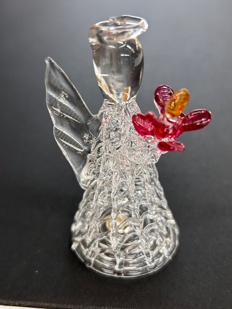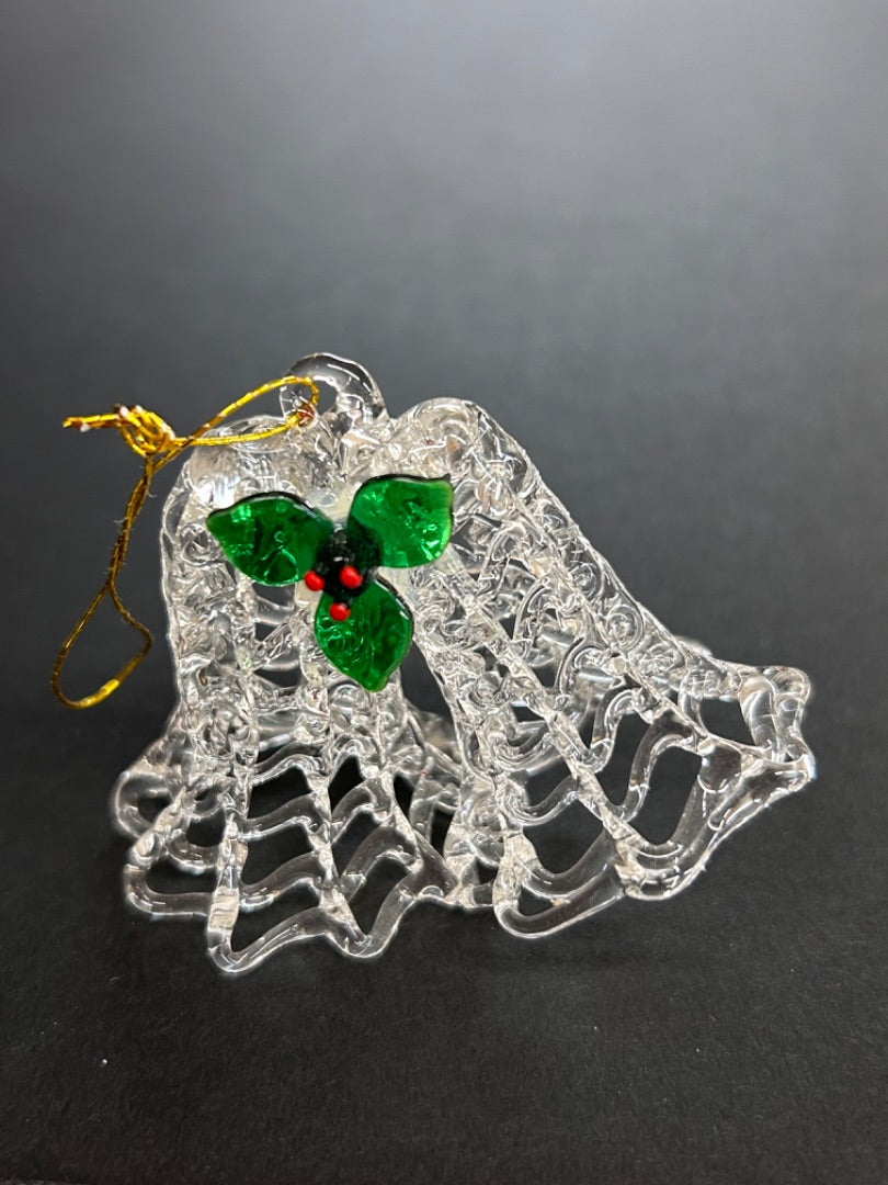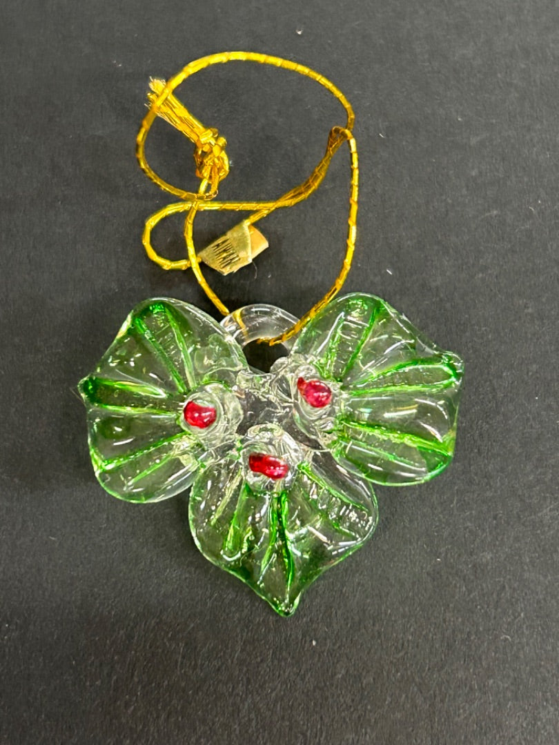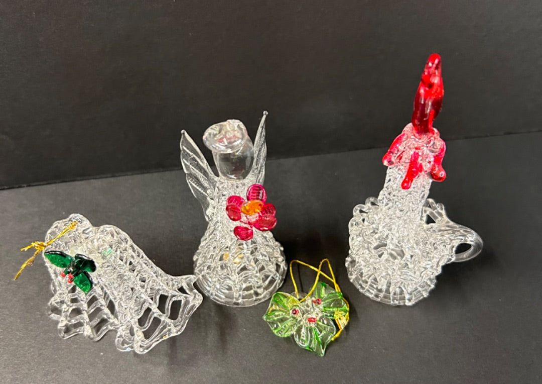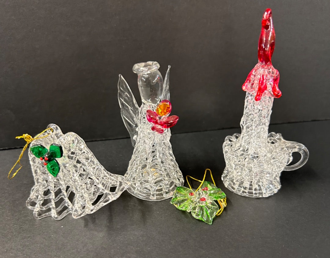 Spun Glass Holiday Christmas Ornaments Set of 4 Holly Bell Angel Candle