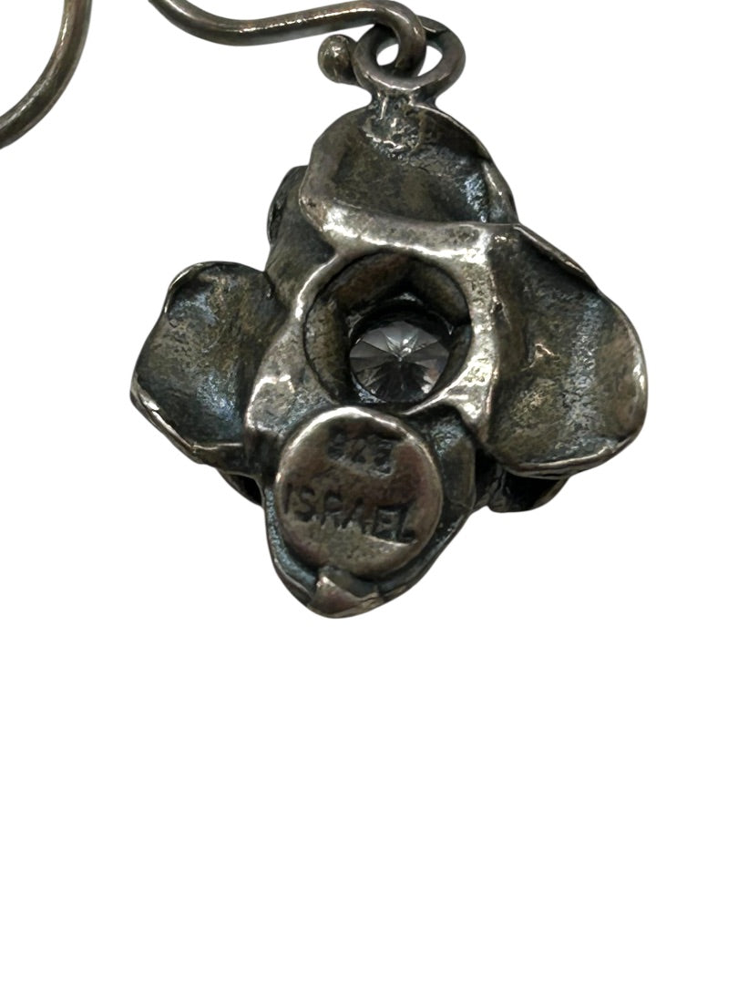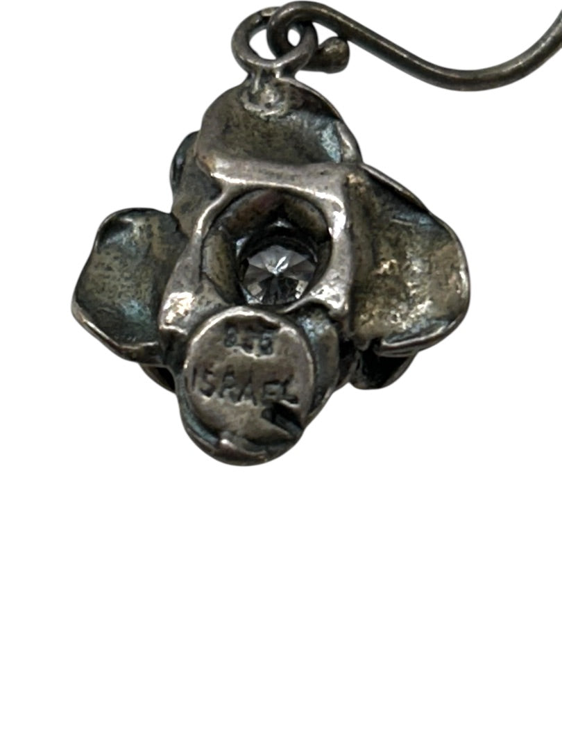 Sterling Silver 925 Fish Hook Pierced Flower Earrings Isreal 1" Drop