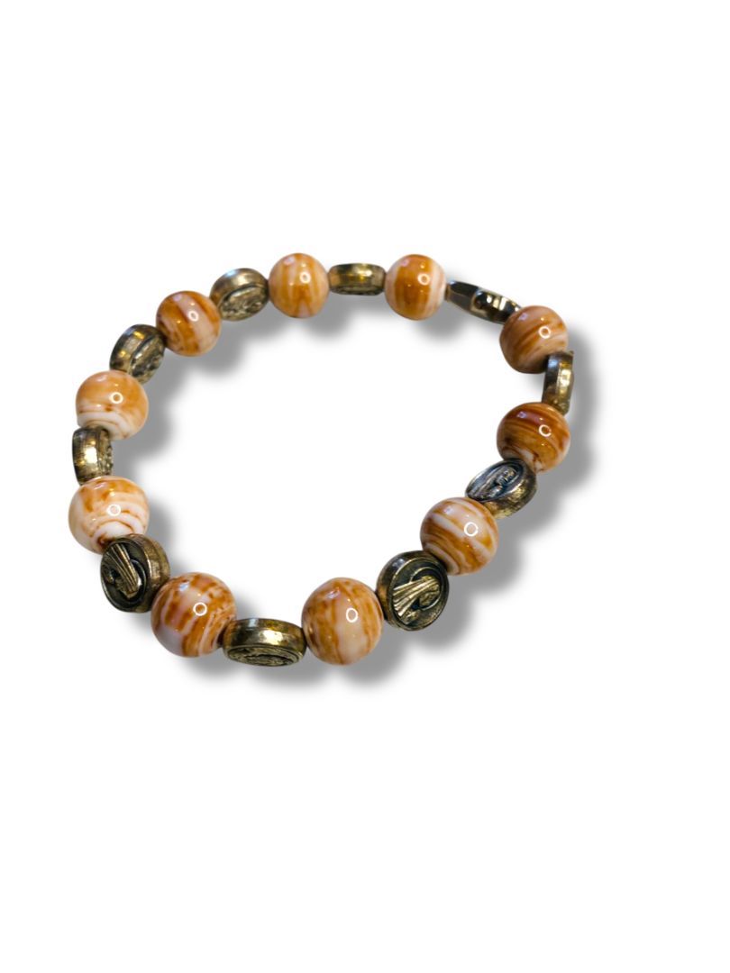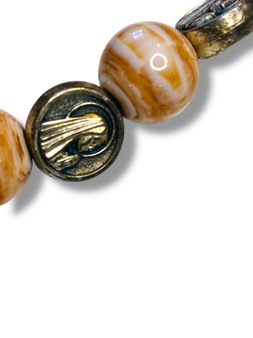 Stretch Acrylic Silvertone Beaded Bracelet Virgin Mary Cross