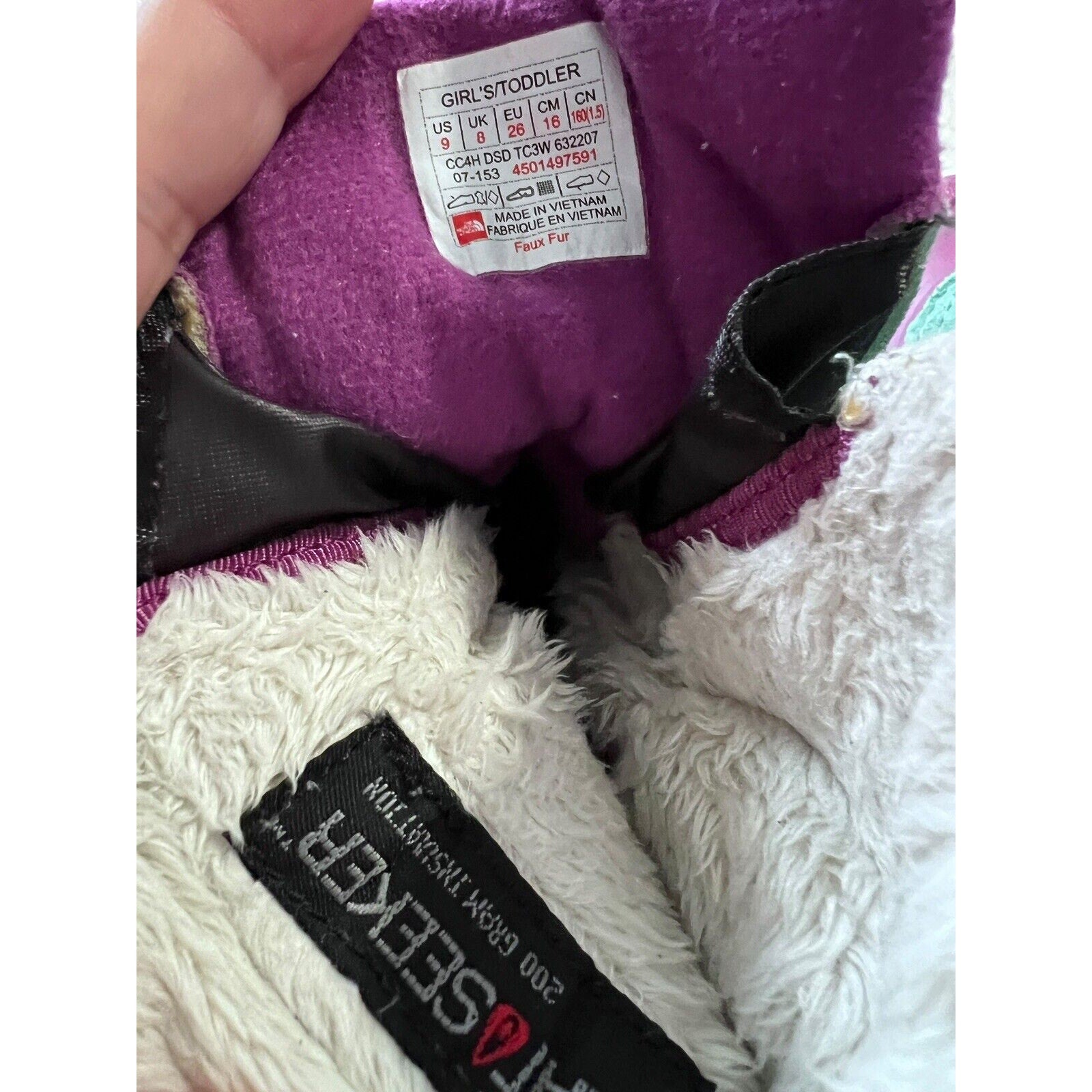 The North Face Toddler Alpenglow Snow Boots Purple Teal Waterproof Size 9