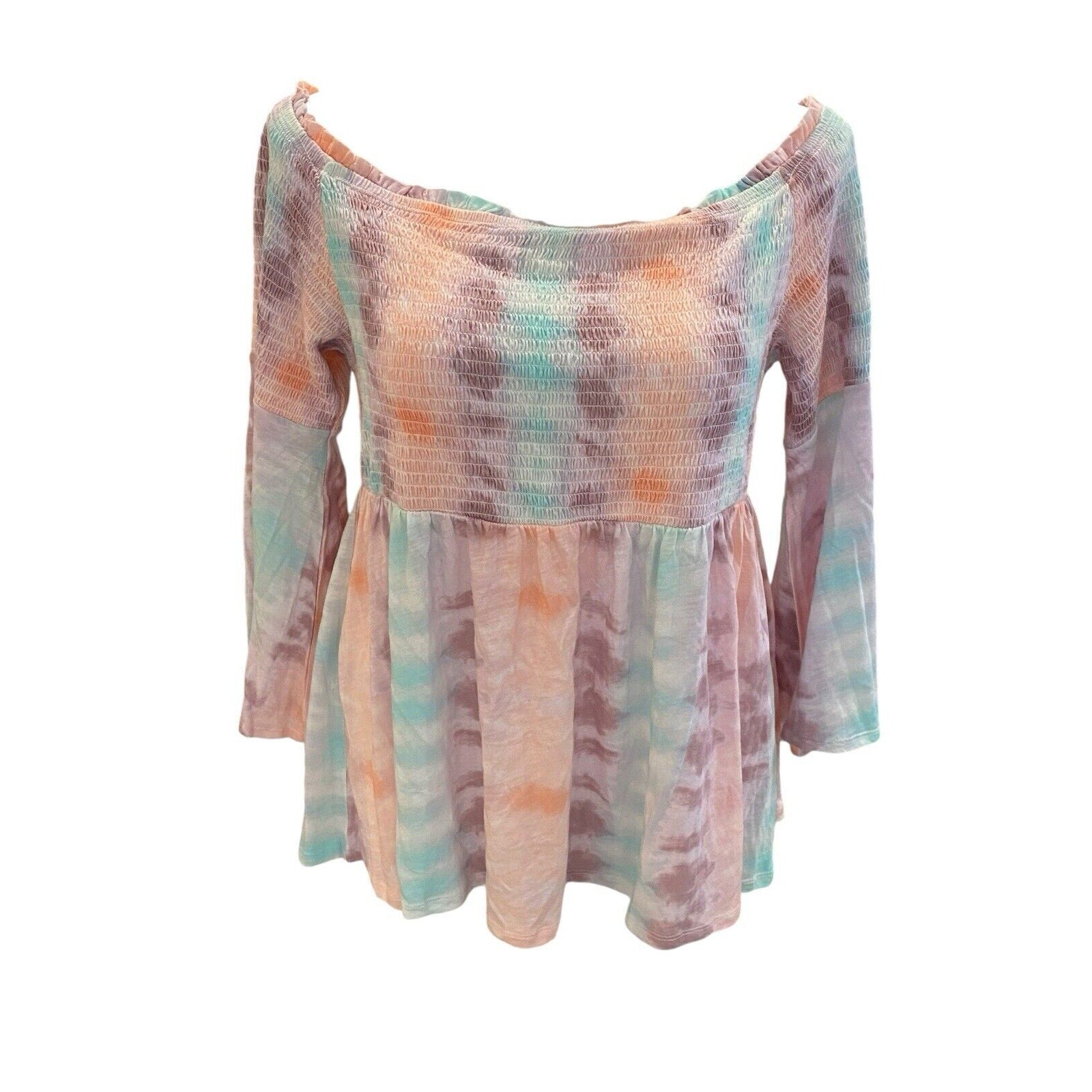 Torrid Womens Plus Sz 1X Tie Dye Babydoll Smocked Off-Shoulder Bell Sleeve Top