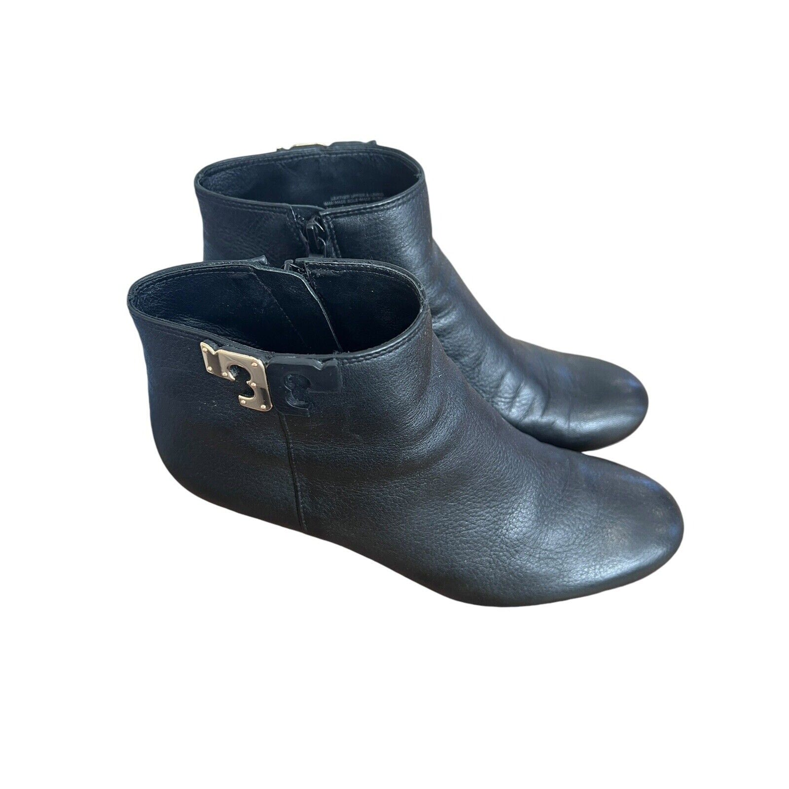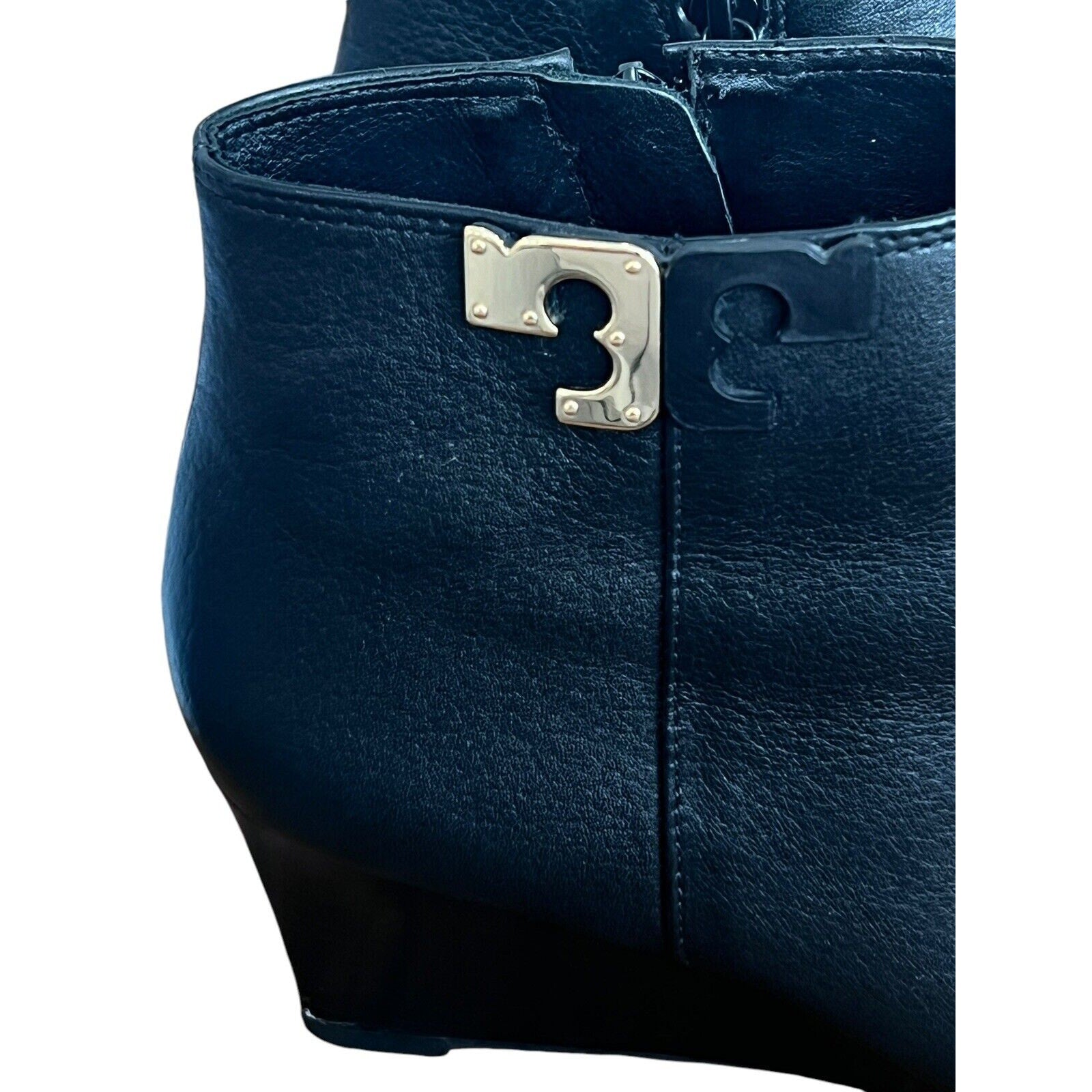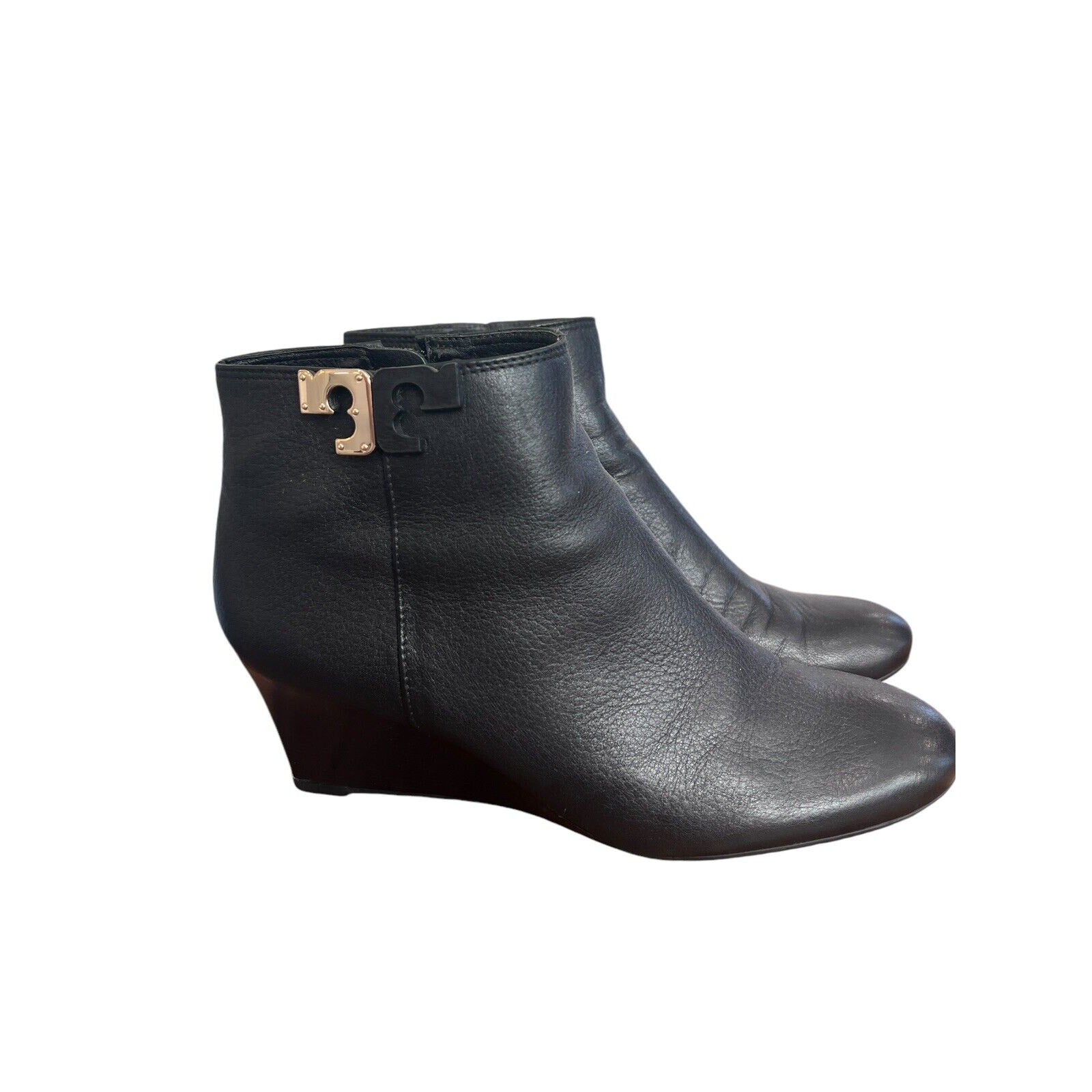 Tory Burch Brooke Black Ankle Wedge Woman Boots Size 9 EUC Pebbled Leather