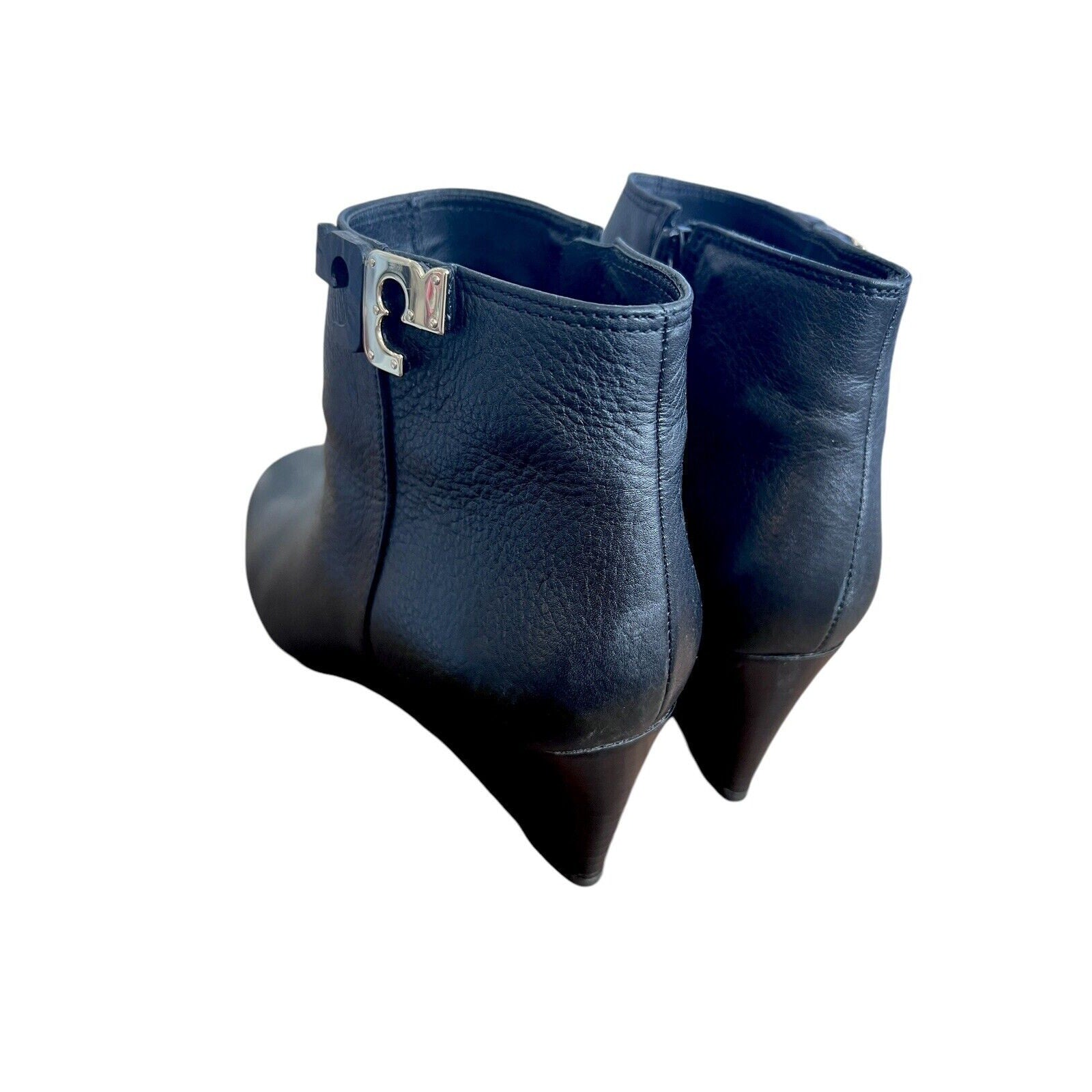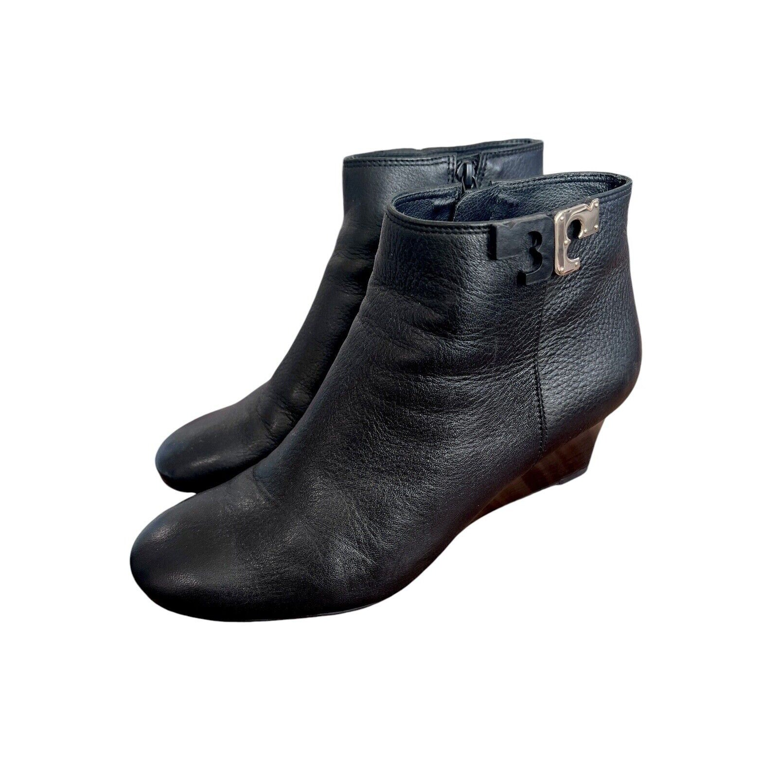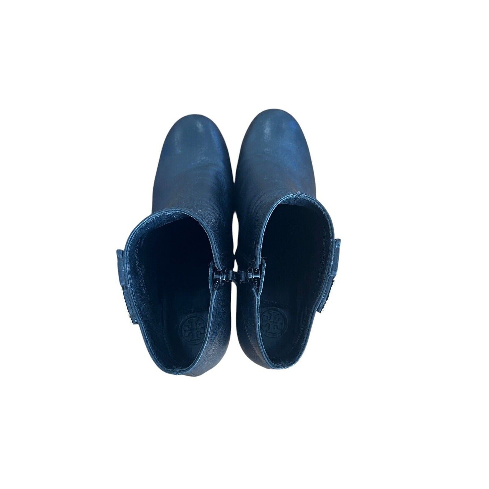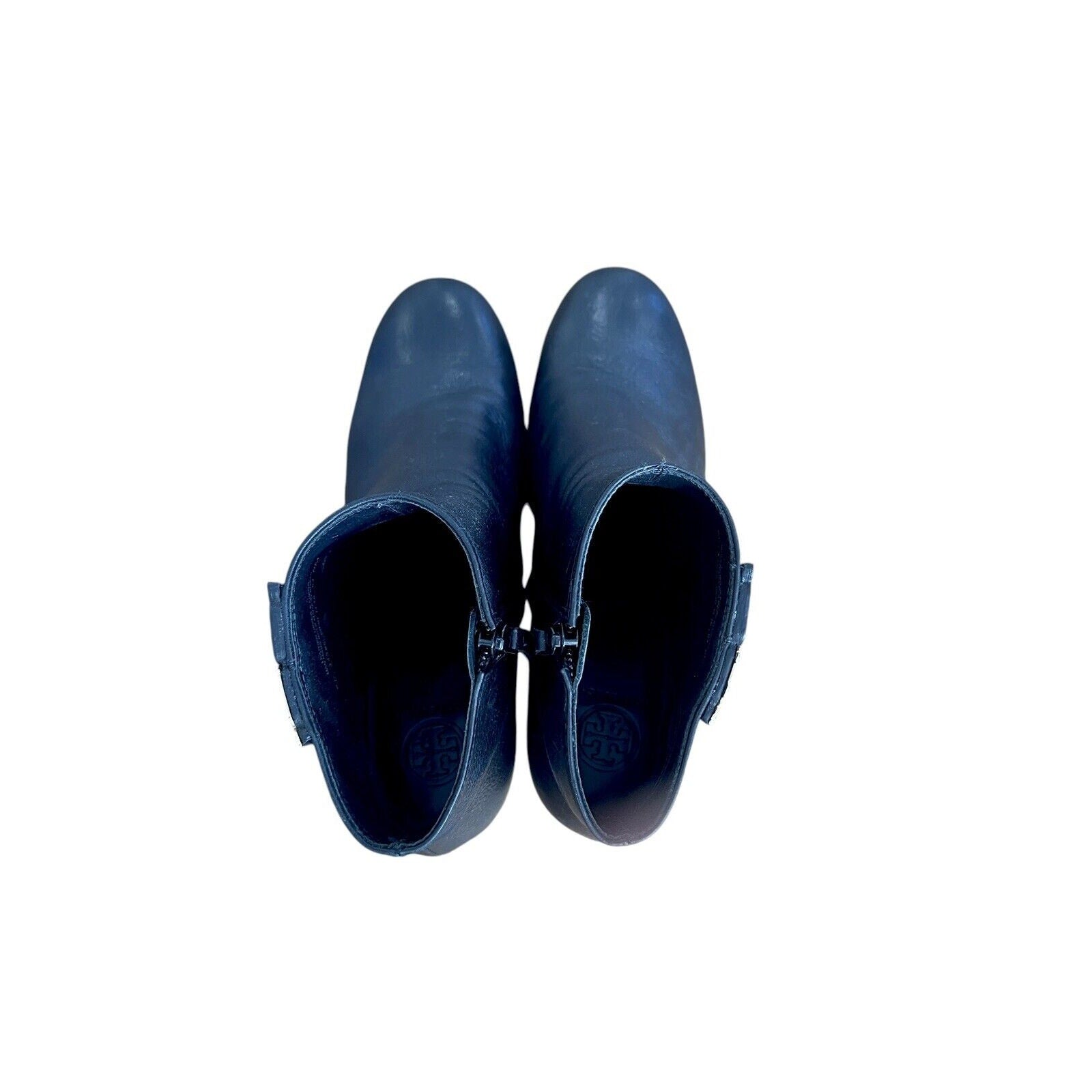 Tory Burch Brooke Black Ankle Wedge Woman Boots Size 9 EUC Pebbled Leather