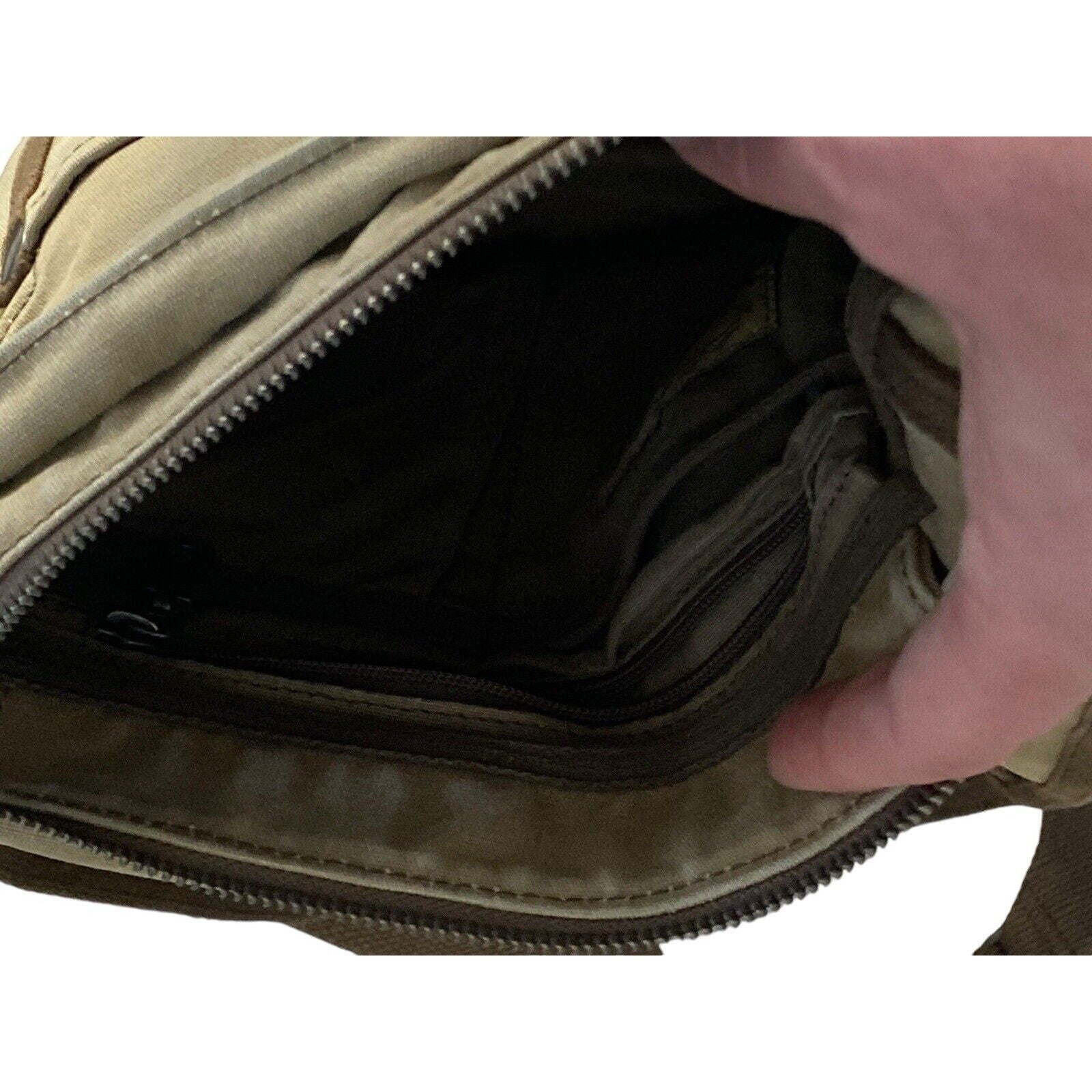 TSD Brand Forest Flap Crossbody Messenger Bag Tan Canvas Brown Leather Trim