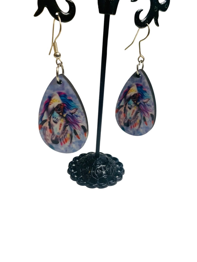 Unicorn Hook Pierced Earrings Lightweight Double Sided 2.4" Drop
