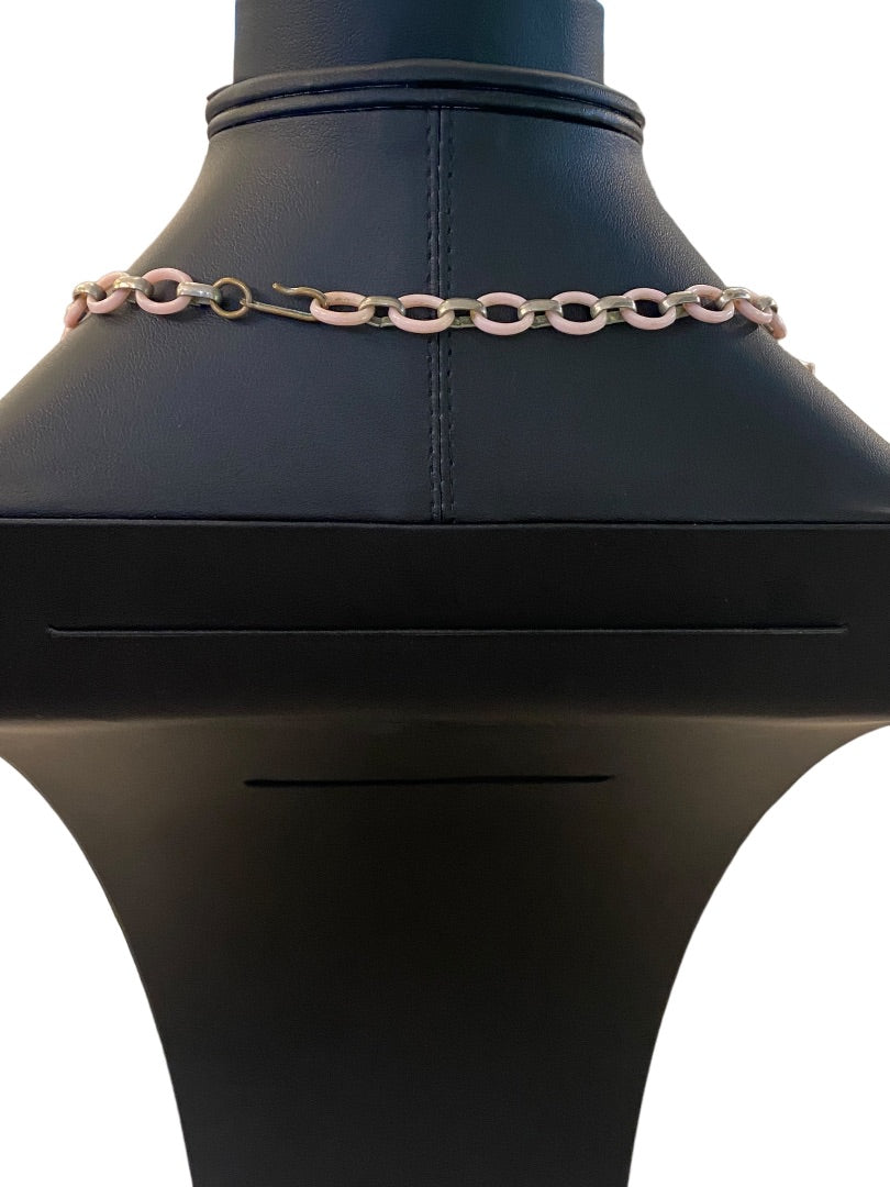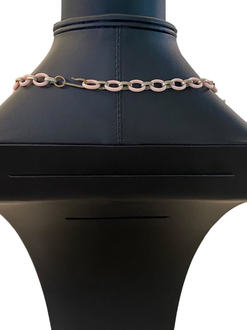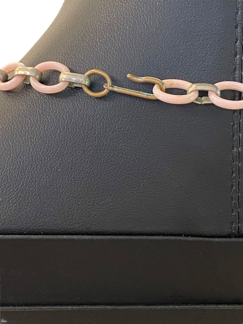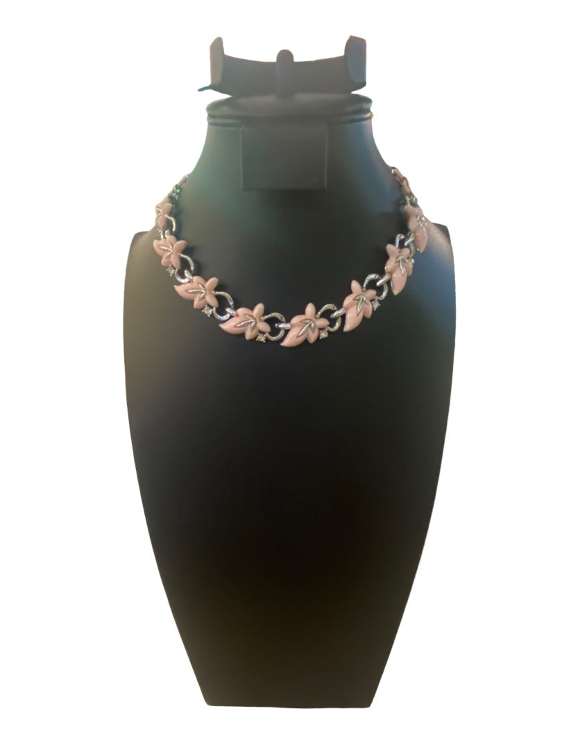 Vintage 13-15" Necklace Hook Closure Pink Plastic Leaf Silvertone