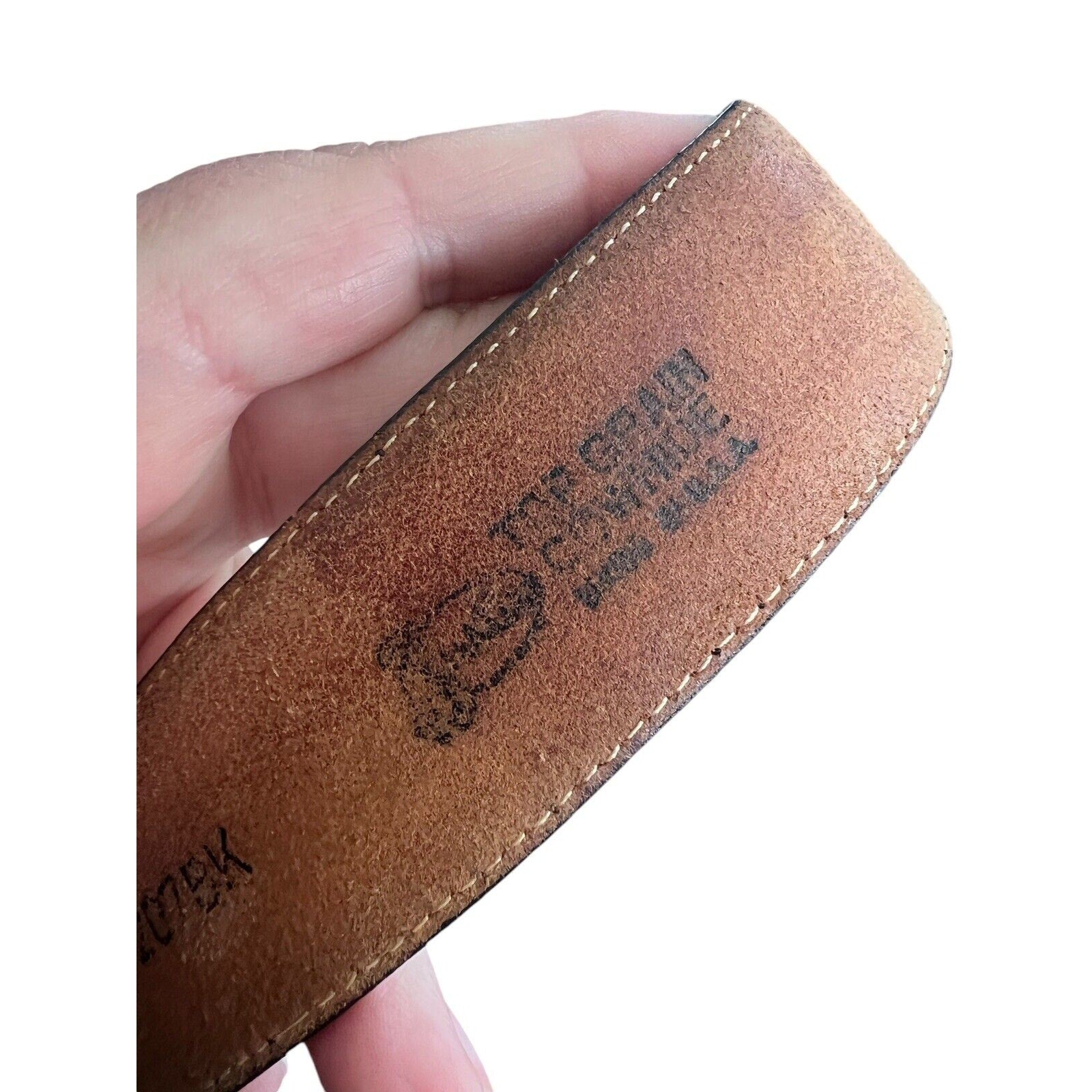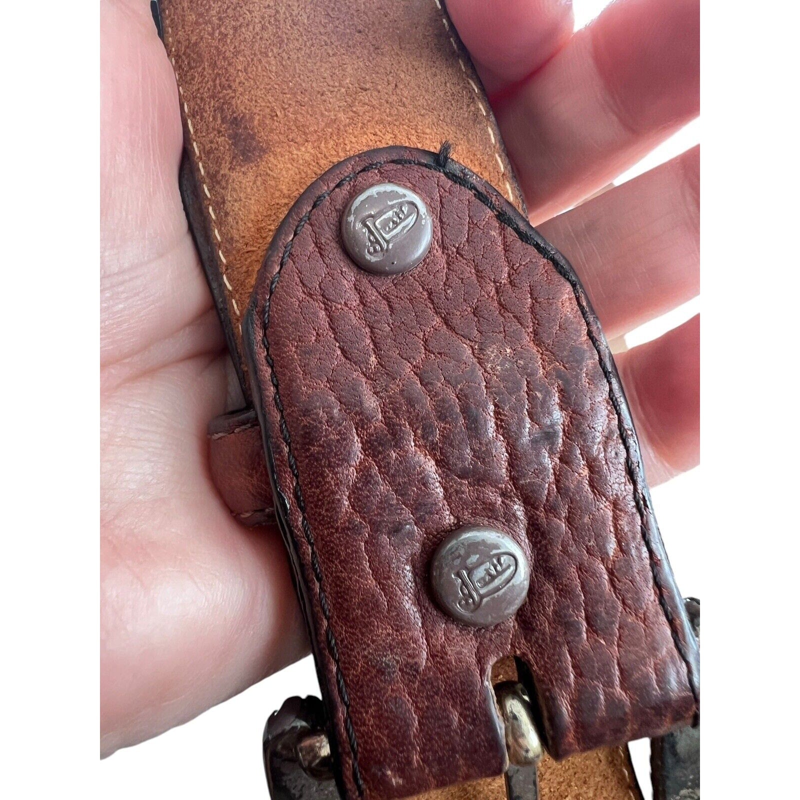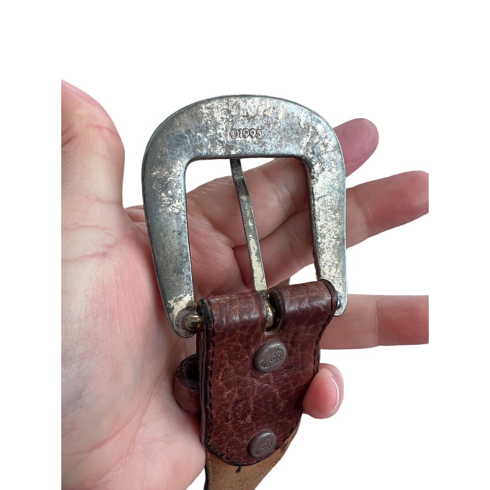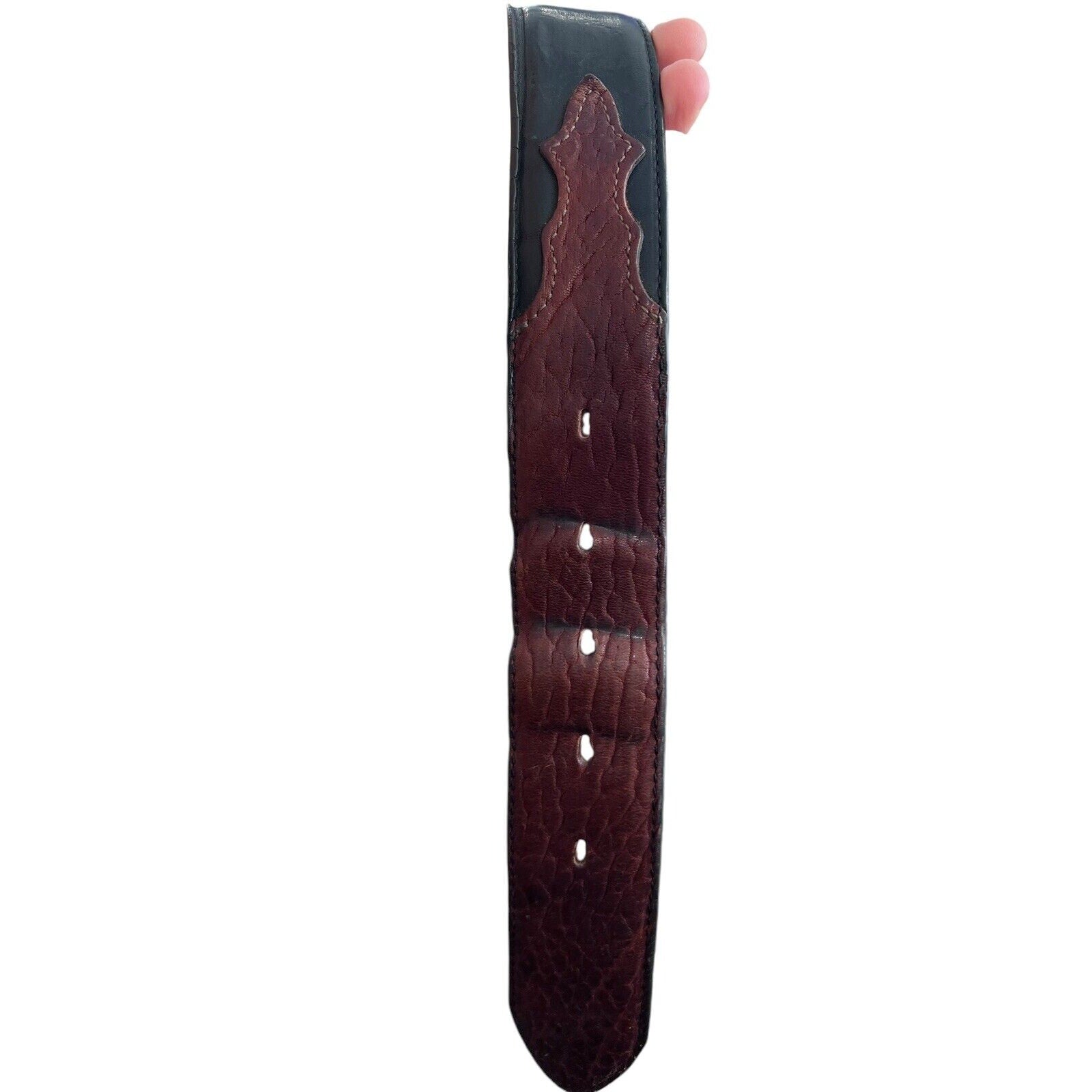 Vintage 1995 JUSTIN Western Black Brown Leather Belt Cowboy Silver Tone Buckle