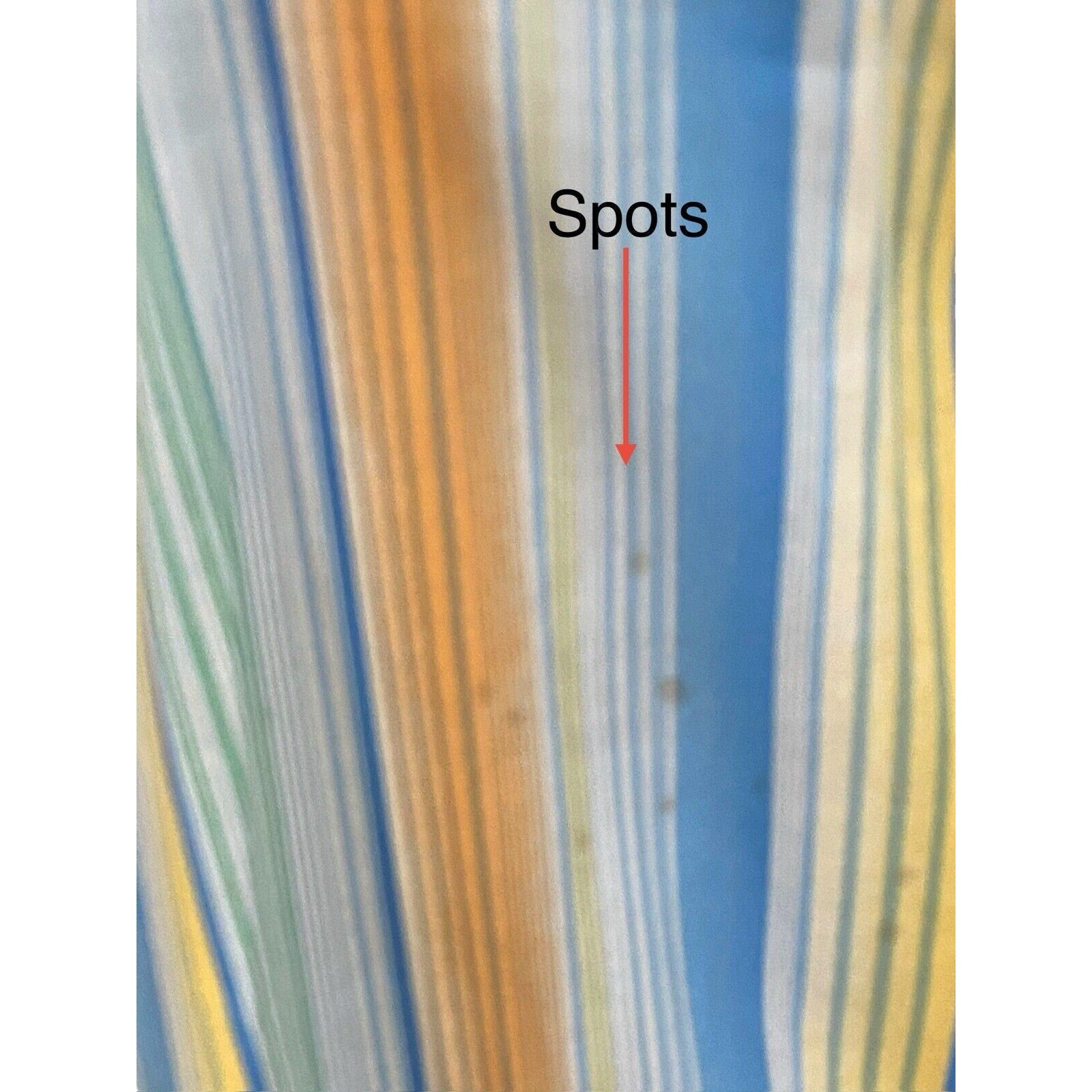 There are a few spots (shown in photos) and parts of the hem need to be tacked back.