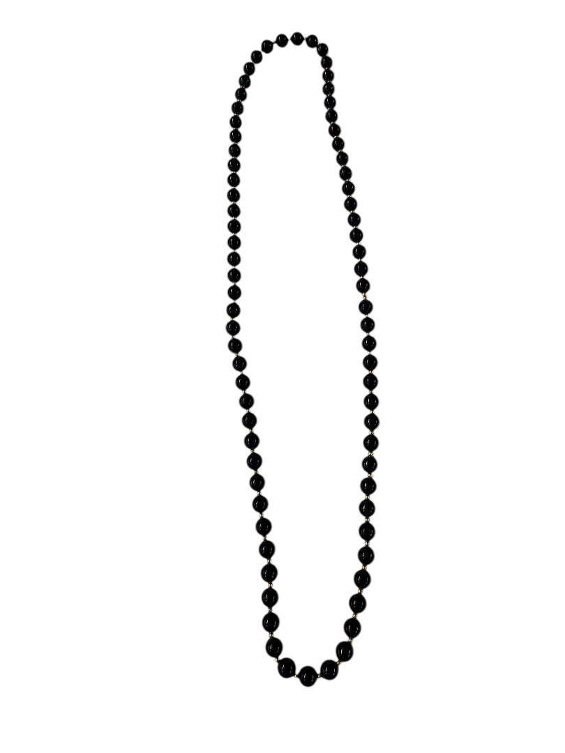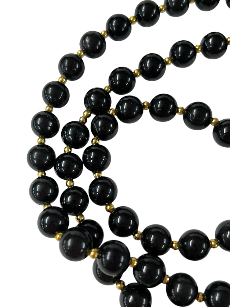Vintage Black Goldtone Acrylic Necklace Beaded 34 Inch Overhead No Clasp