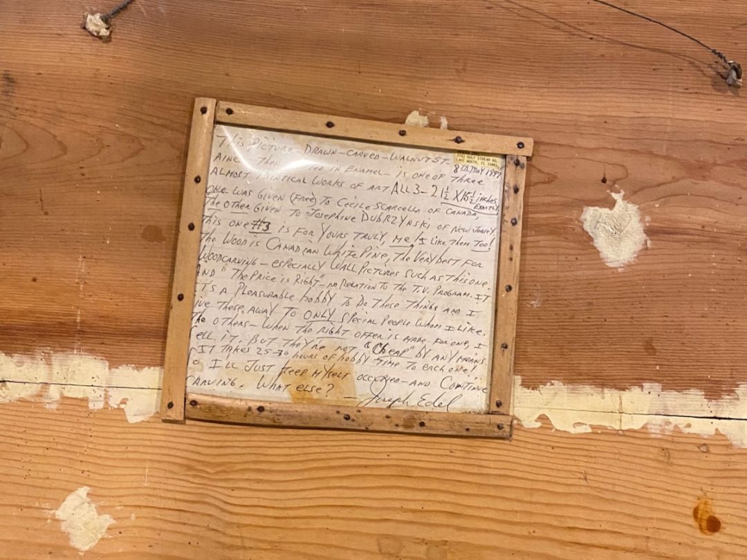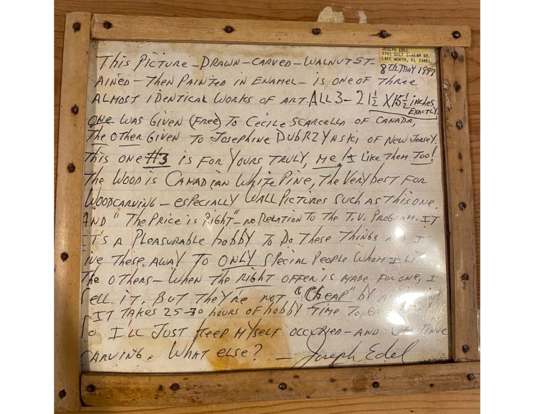 good vintage condition, carved on Canadian white pine, some marking and damage to frame, see photos