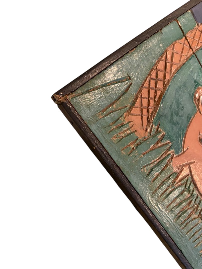 Vintage Carved Wooden Nature Scene Enameled Paint 22" x 16"