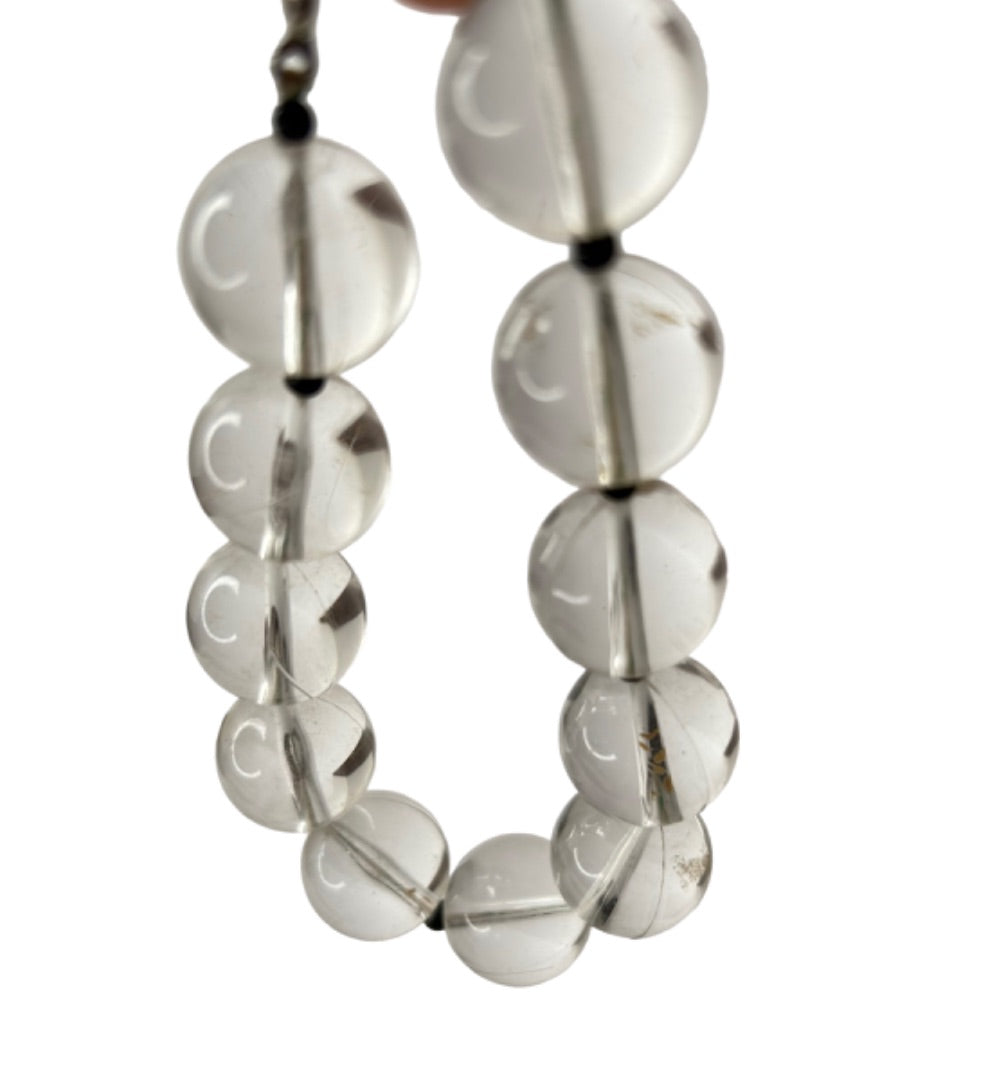 Vintage Clear Acrylic Beaded Statement Bracelet Black Spacers Retro 8.5"