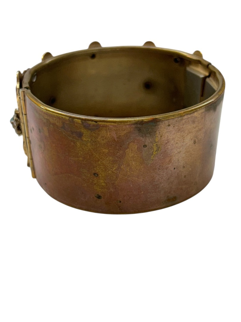 Vintage Cuff Bangle Bracelet Hinged Aquamarine Ornate