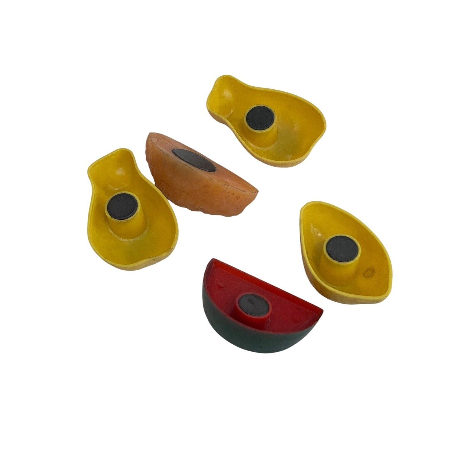 Vintage Fruit Fridge Refrigerator Magnets Plastic set of 5 1960s Watermelon Pear