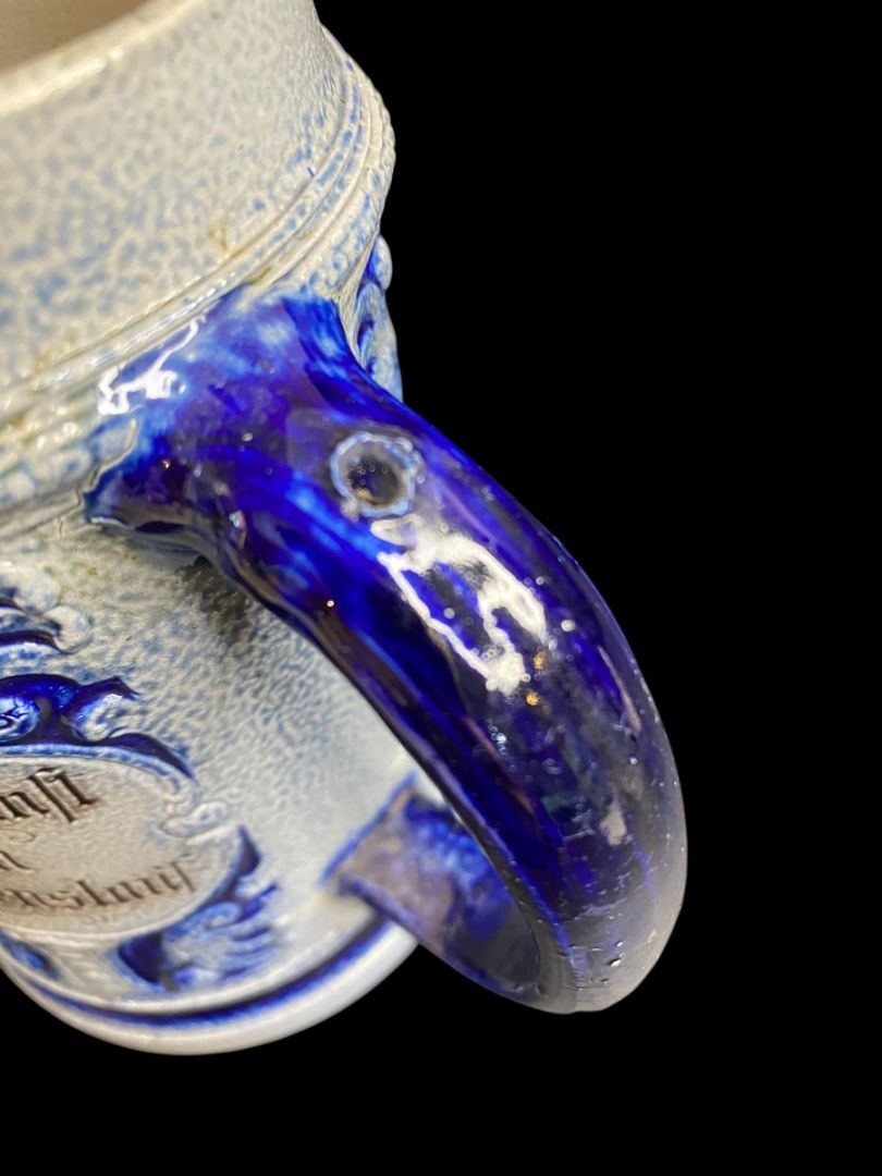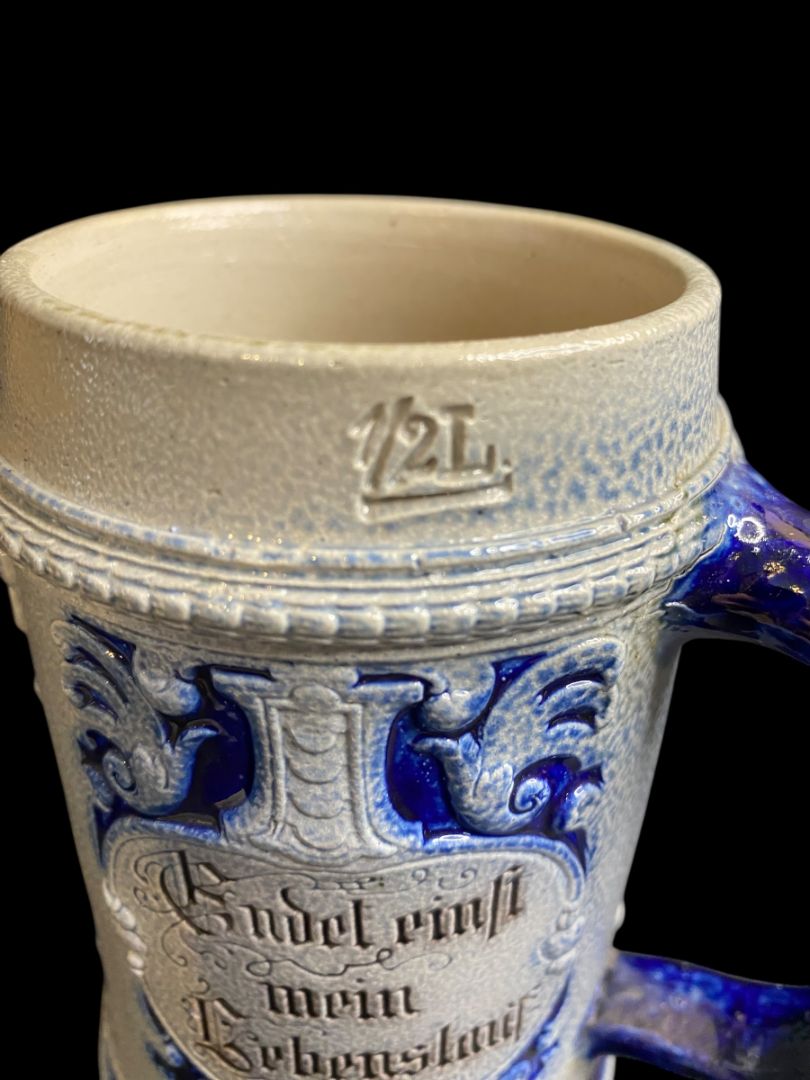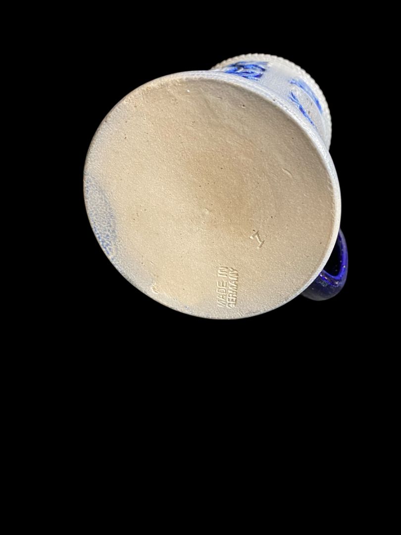 Vintage Germany Stoneware Stein Salt Glazed Mug Cobalt .5 Liter Drink Quickly . . .