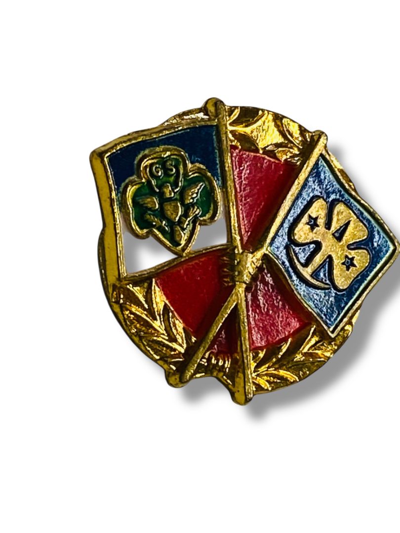 Vintage Girl Scout Friendship Pin Goldtone Flags .75"