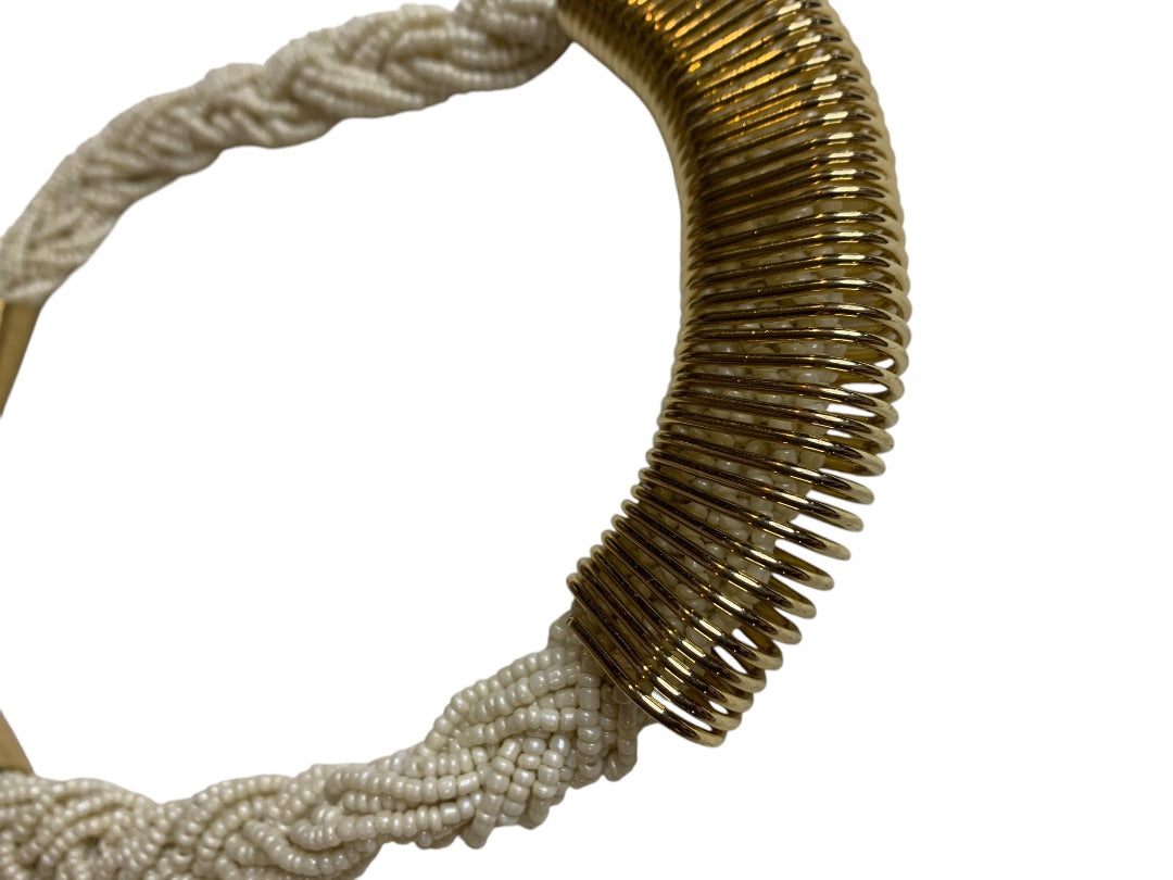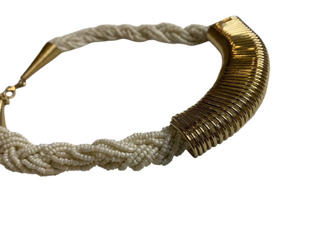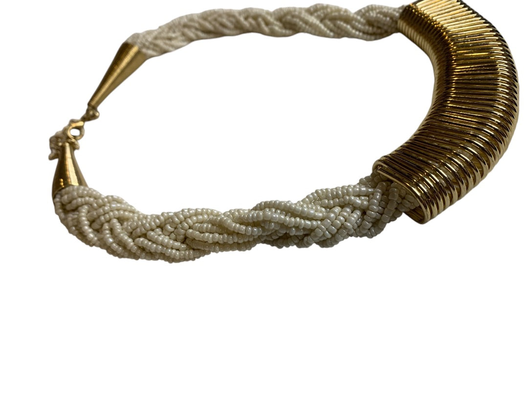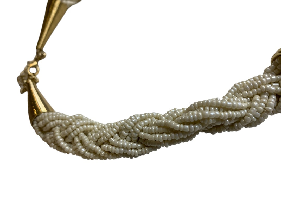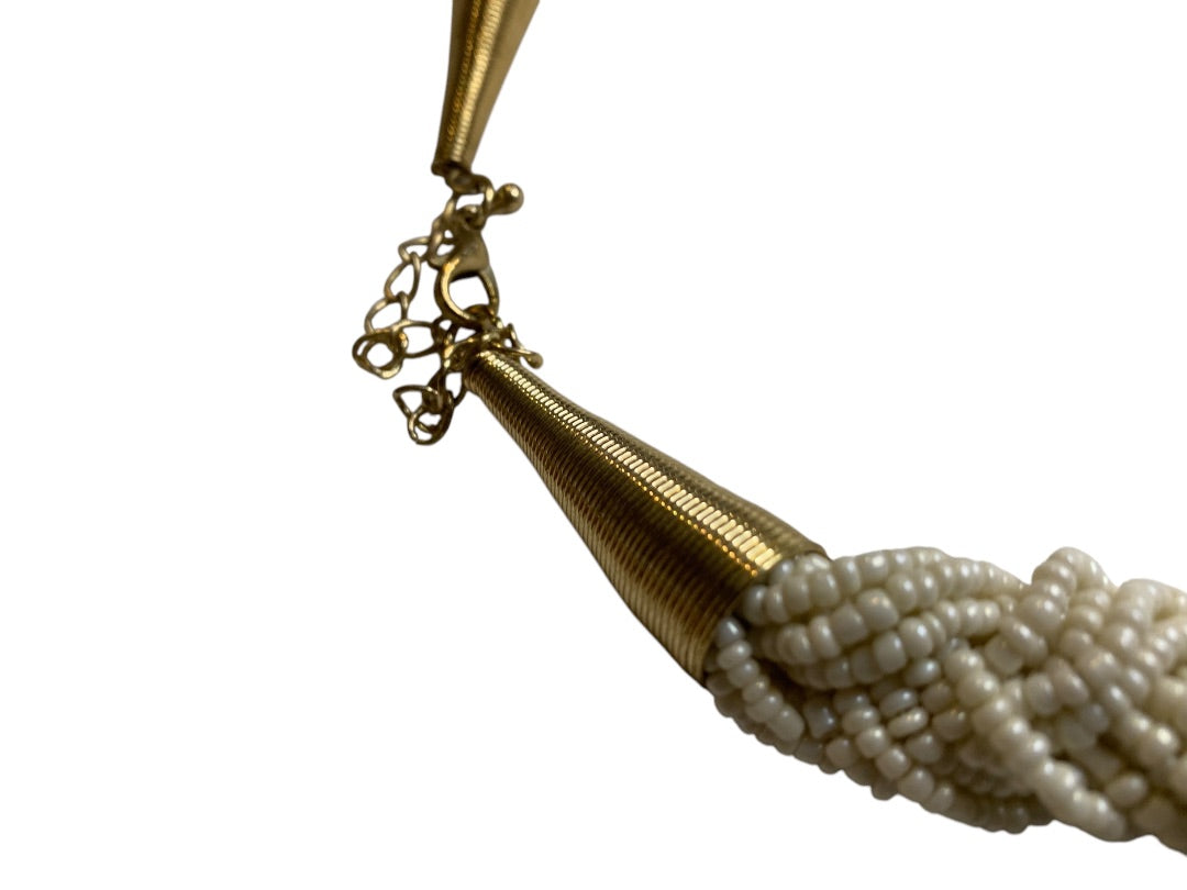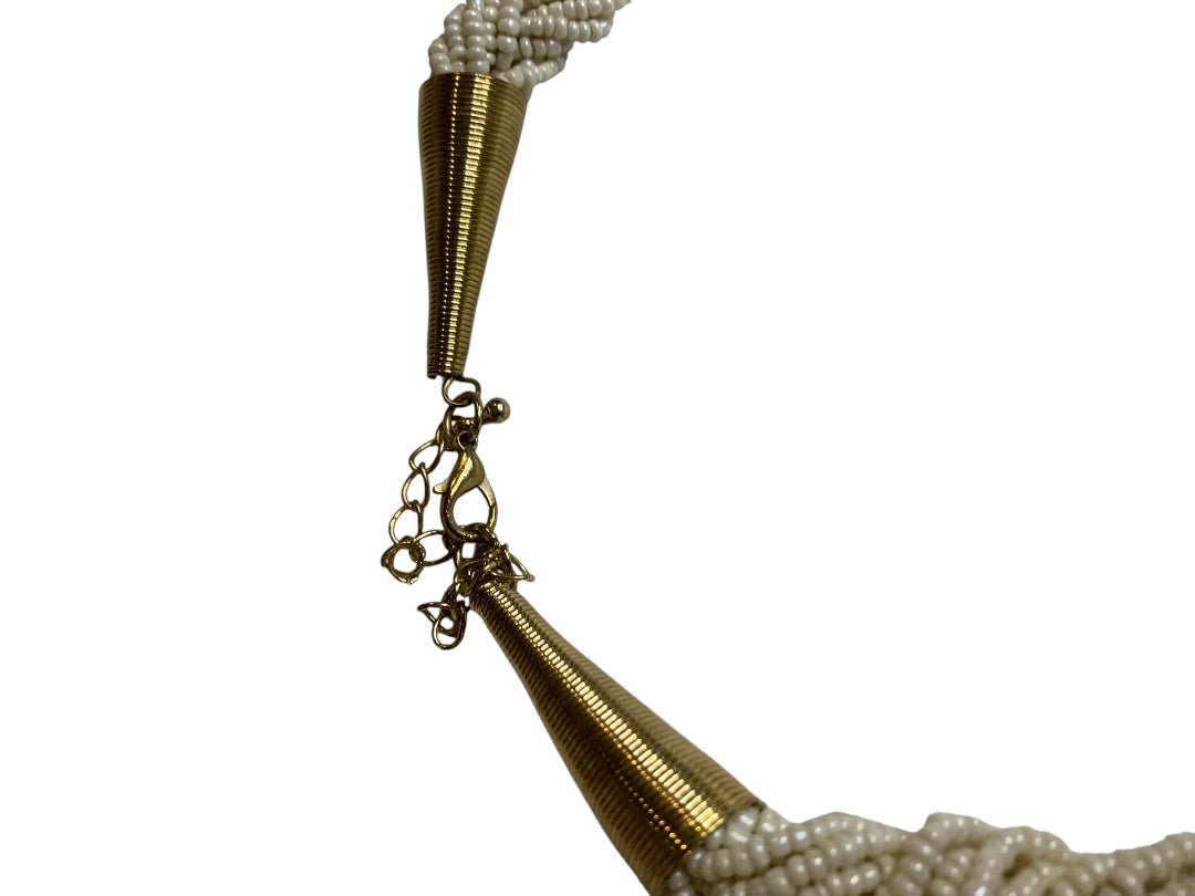 Vintage Goldtone White Seed Bead Statement Necklace 18-22 Inch