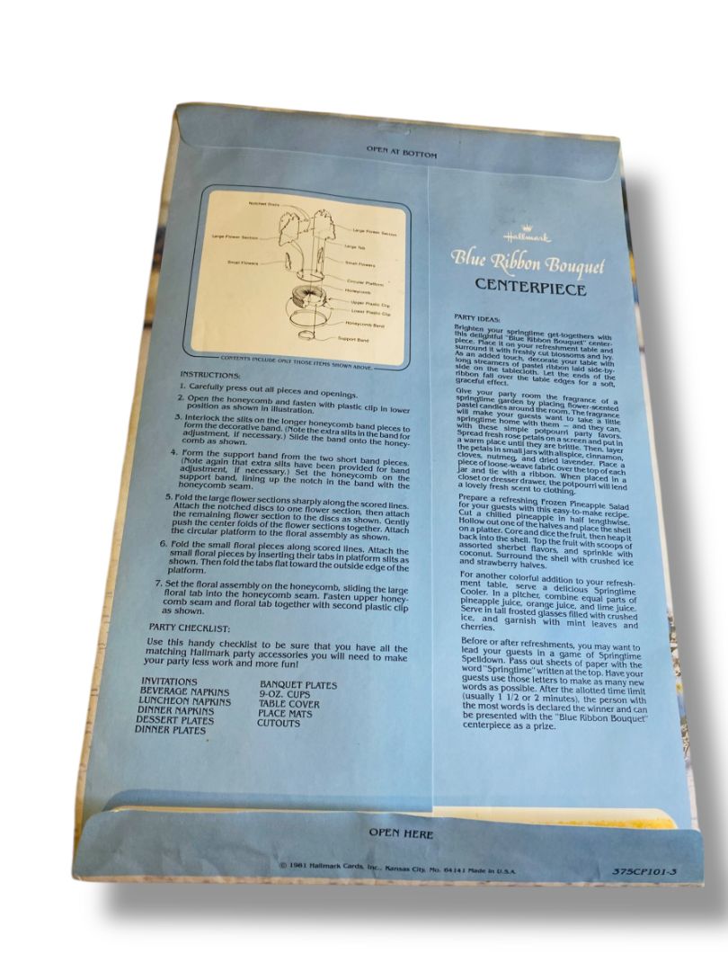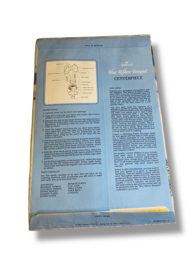 Vintage Hallmark Blue Ribbon Bouquet Honeycomb 10" 375CP101-3