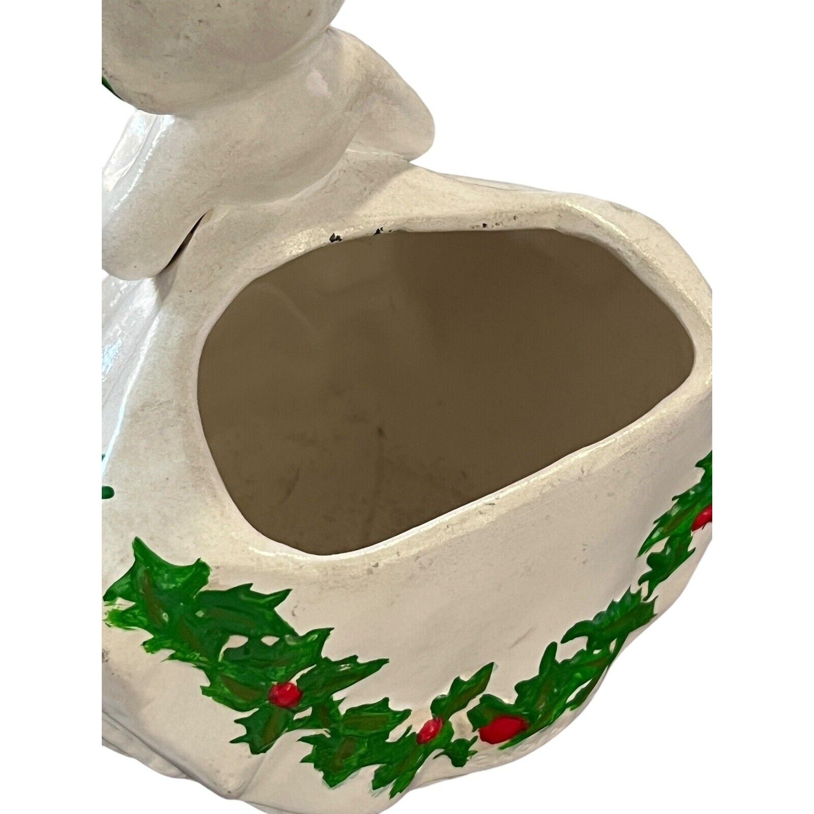 Vintage HOLLY GIRL Christmas Figurine Vase Large Planter 7x6x5 Handpainted