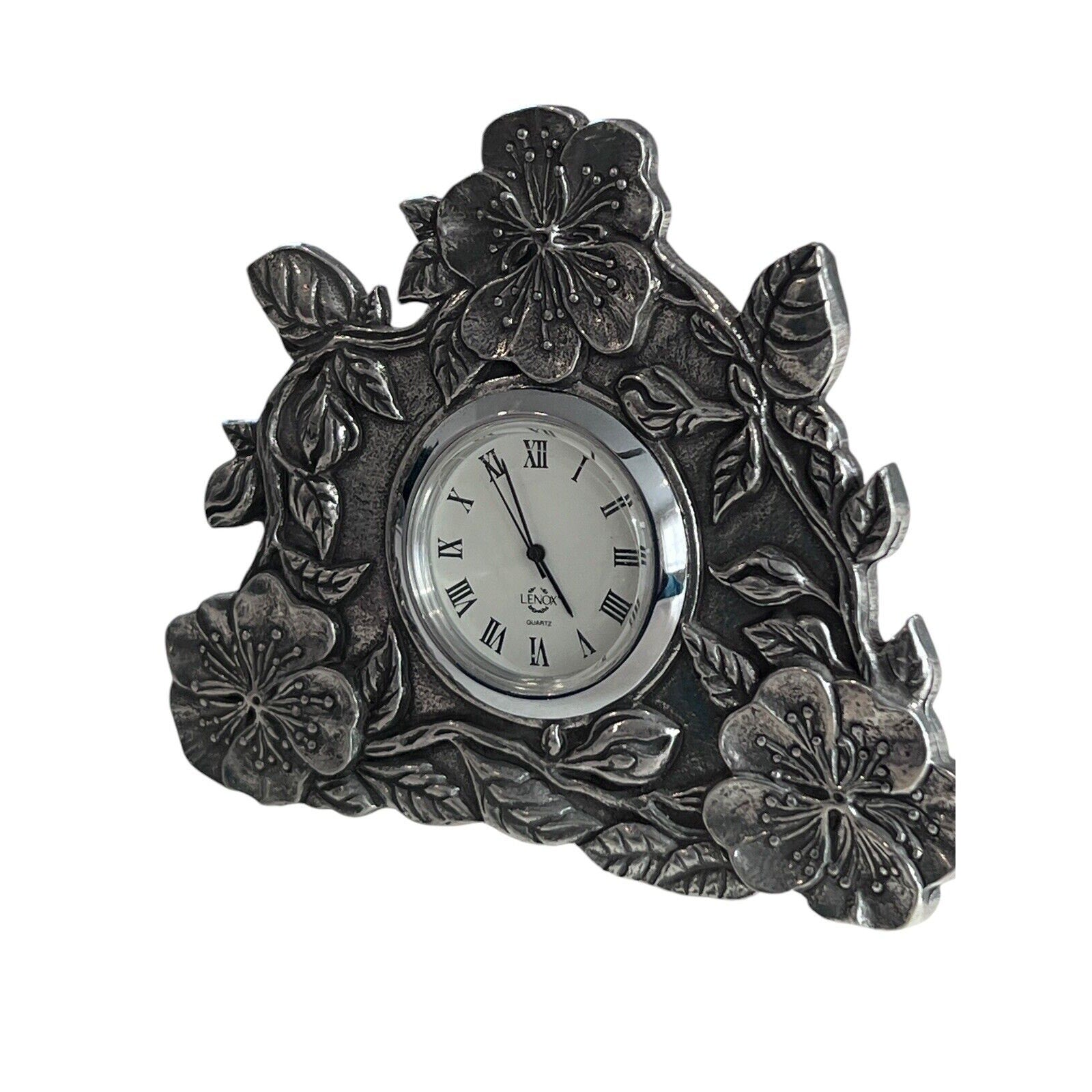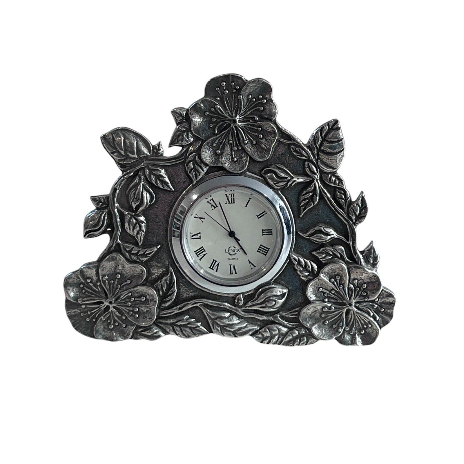 Vintage Lenox Kirk Stieff Pewter Quartz Clock Floral Poppy Desk Table Travel