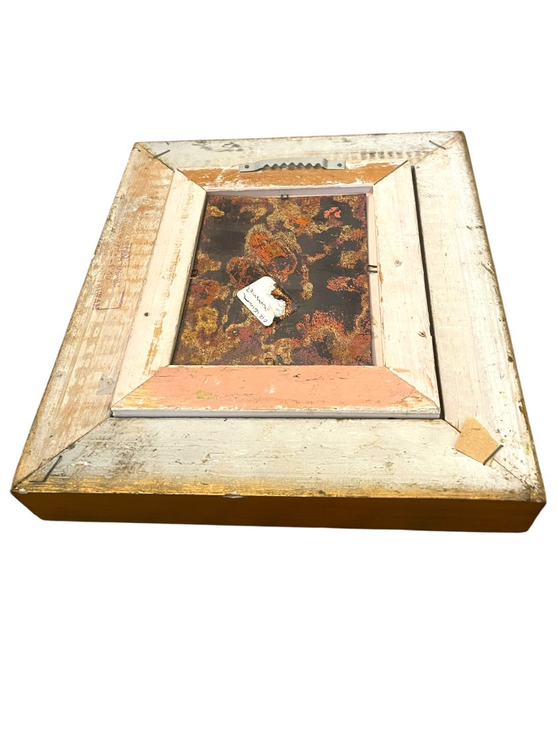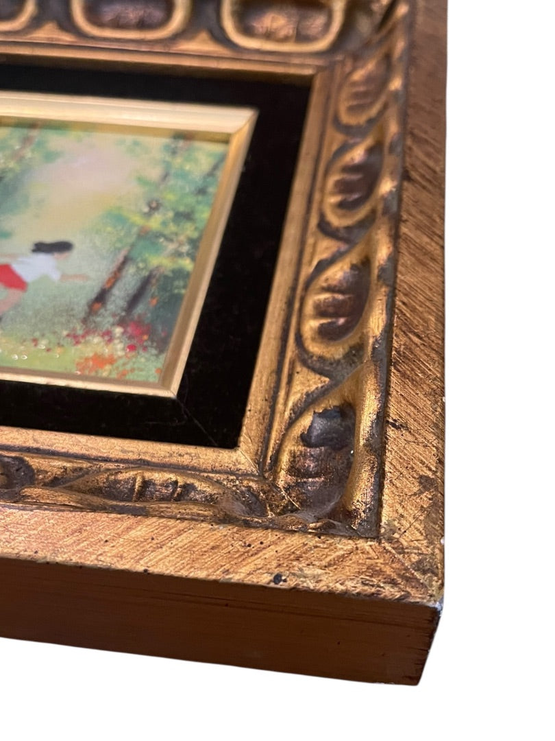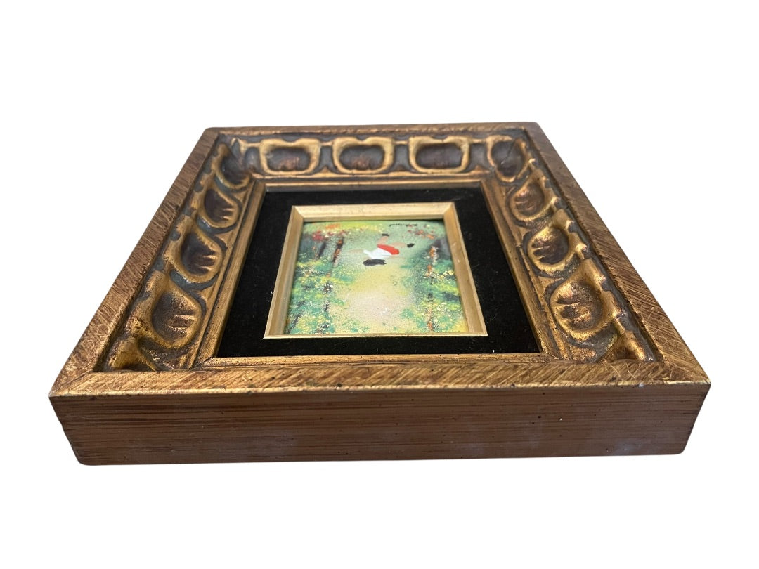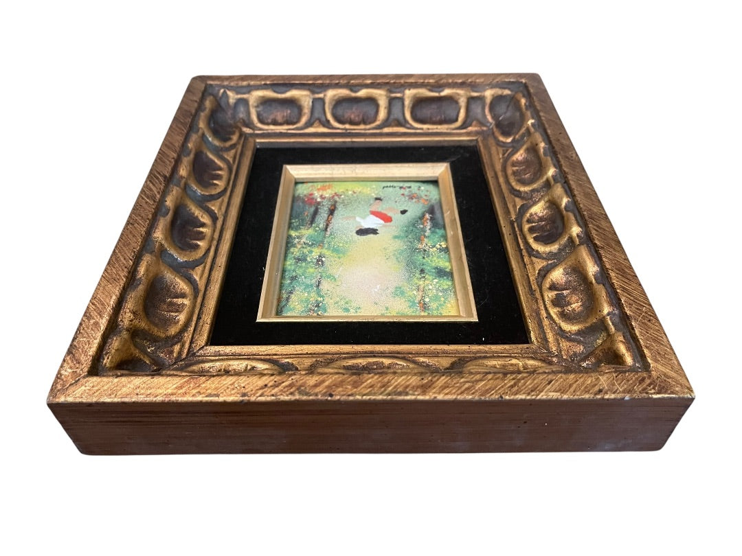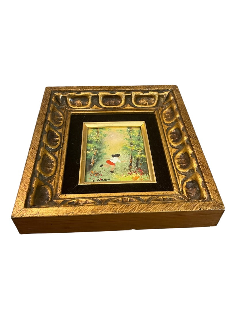 Vintage Louis Cardin Original Enamel on Copper Painting Girl Running 10" x 9"