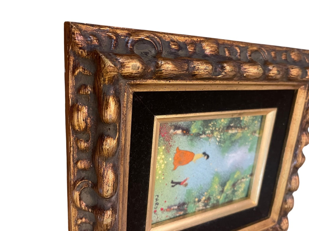 Vintage Louis Cardin Original Enamel on Copper Painting Mother Child 8.5" x 9.5"