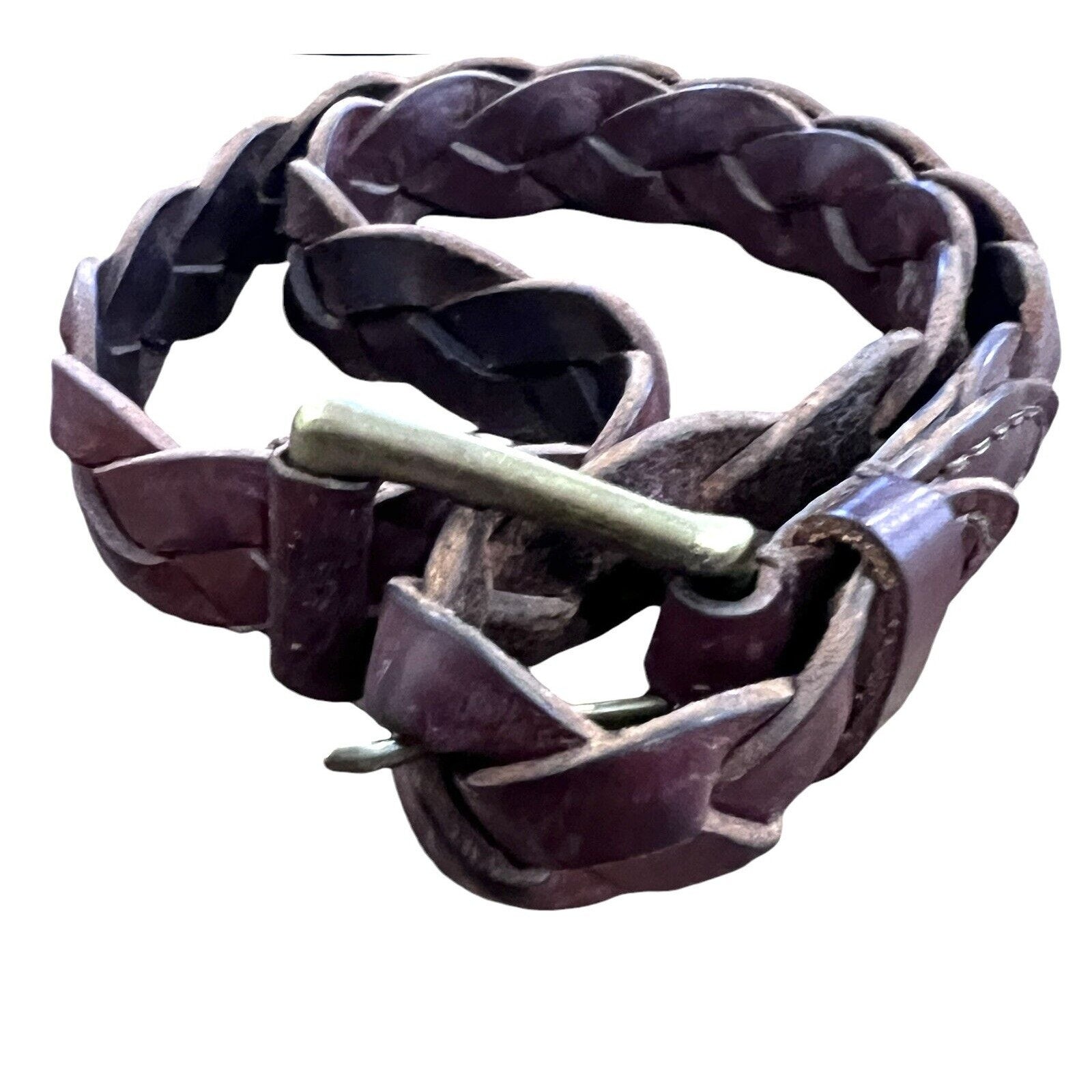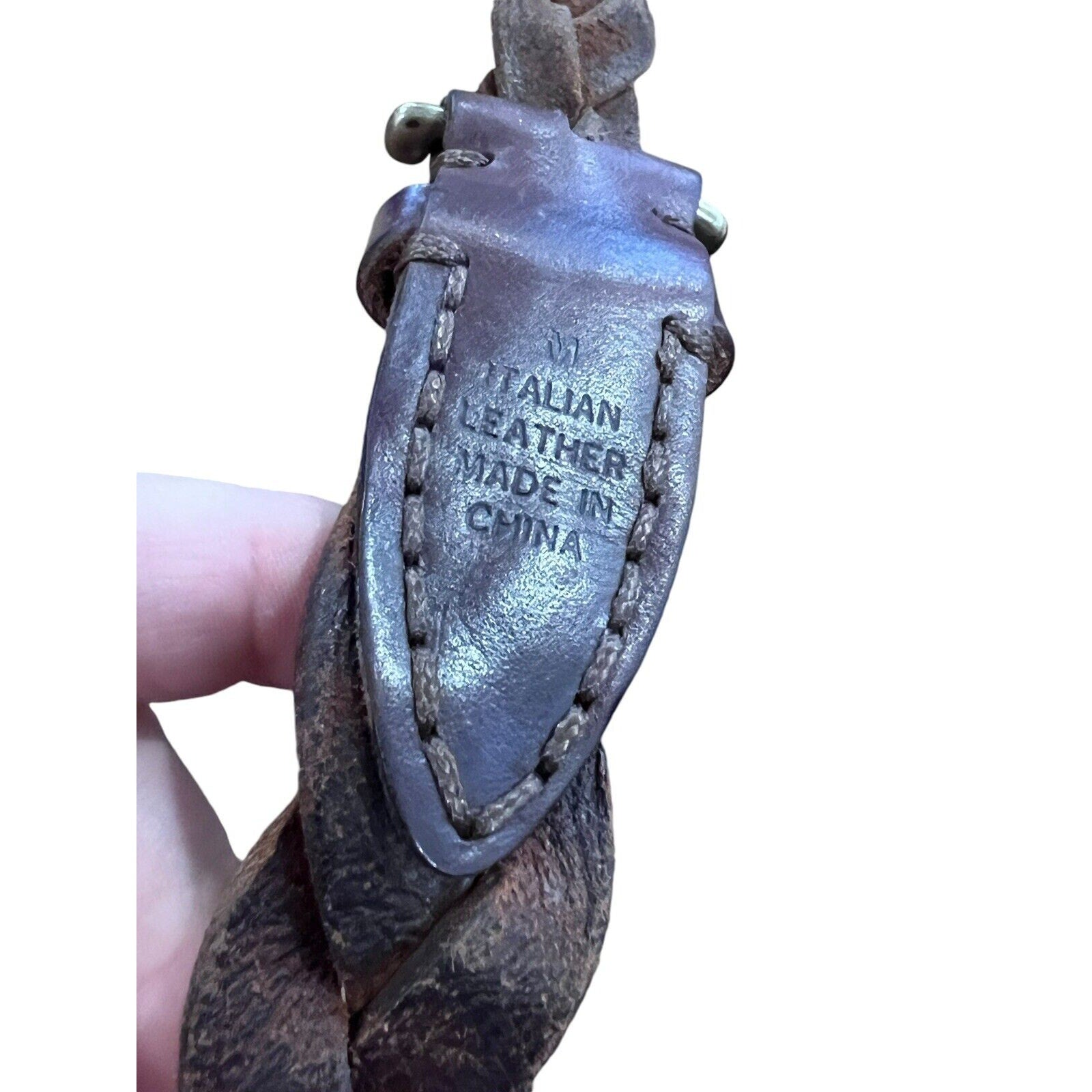 Vintage Mens Leather Braided Brown Belt Brass Hardware M