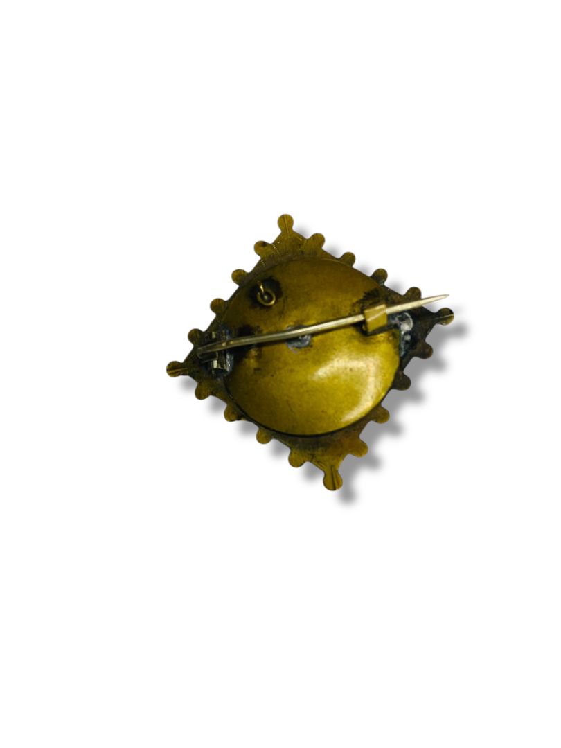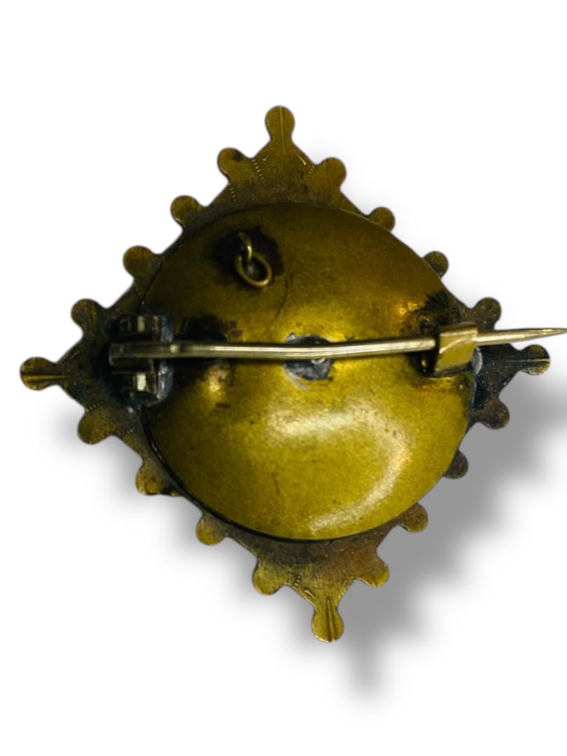 decent condition, the metal border is lifting off base on one side, this is unidentified, but similar to some military pins, see photos
