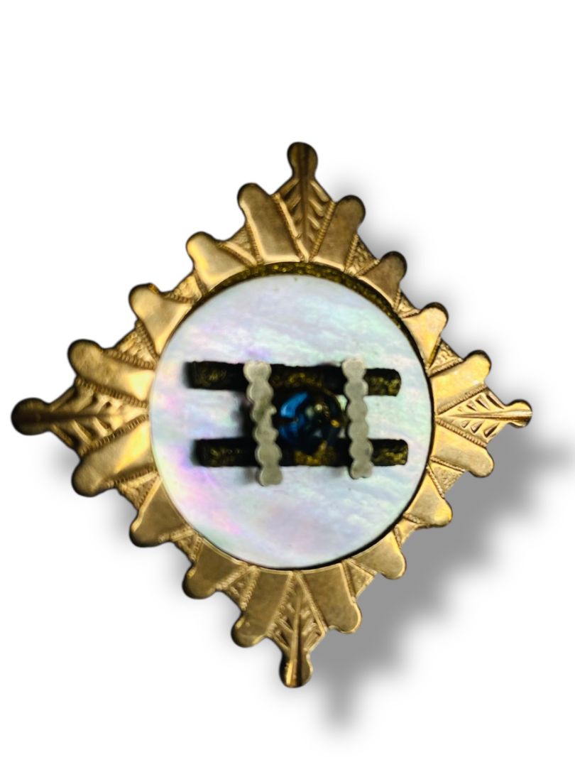 Vintage Metal Pendant Pin Brass Mother of Pearl Dimensional 1.5"