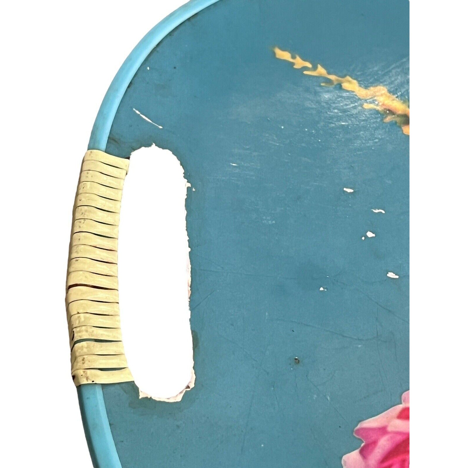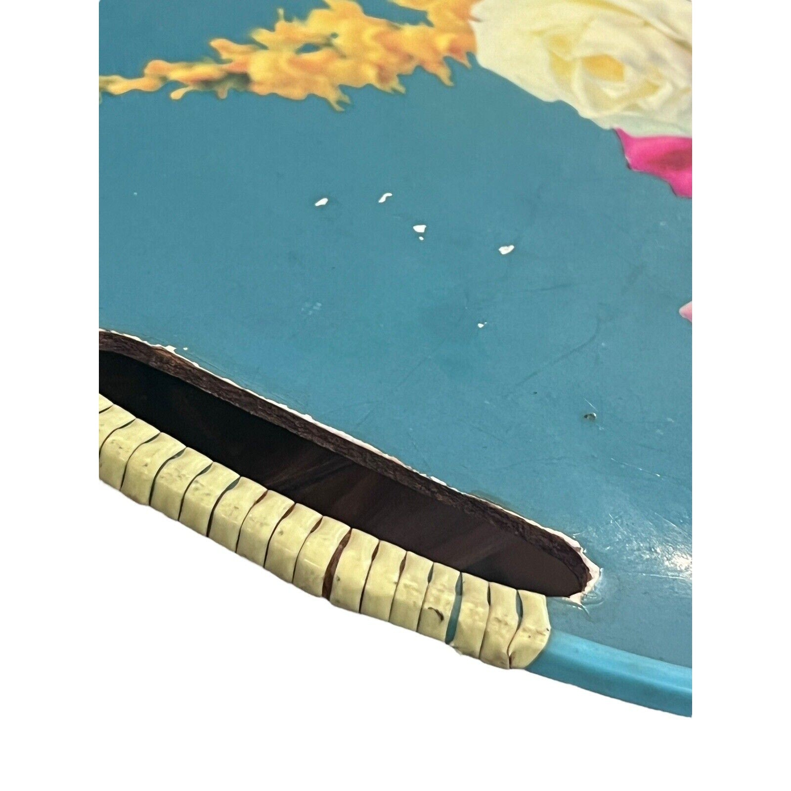 Vintage Serving Tray MCM Floral Roses Wrapped Handles Bouquet Bright Japan
