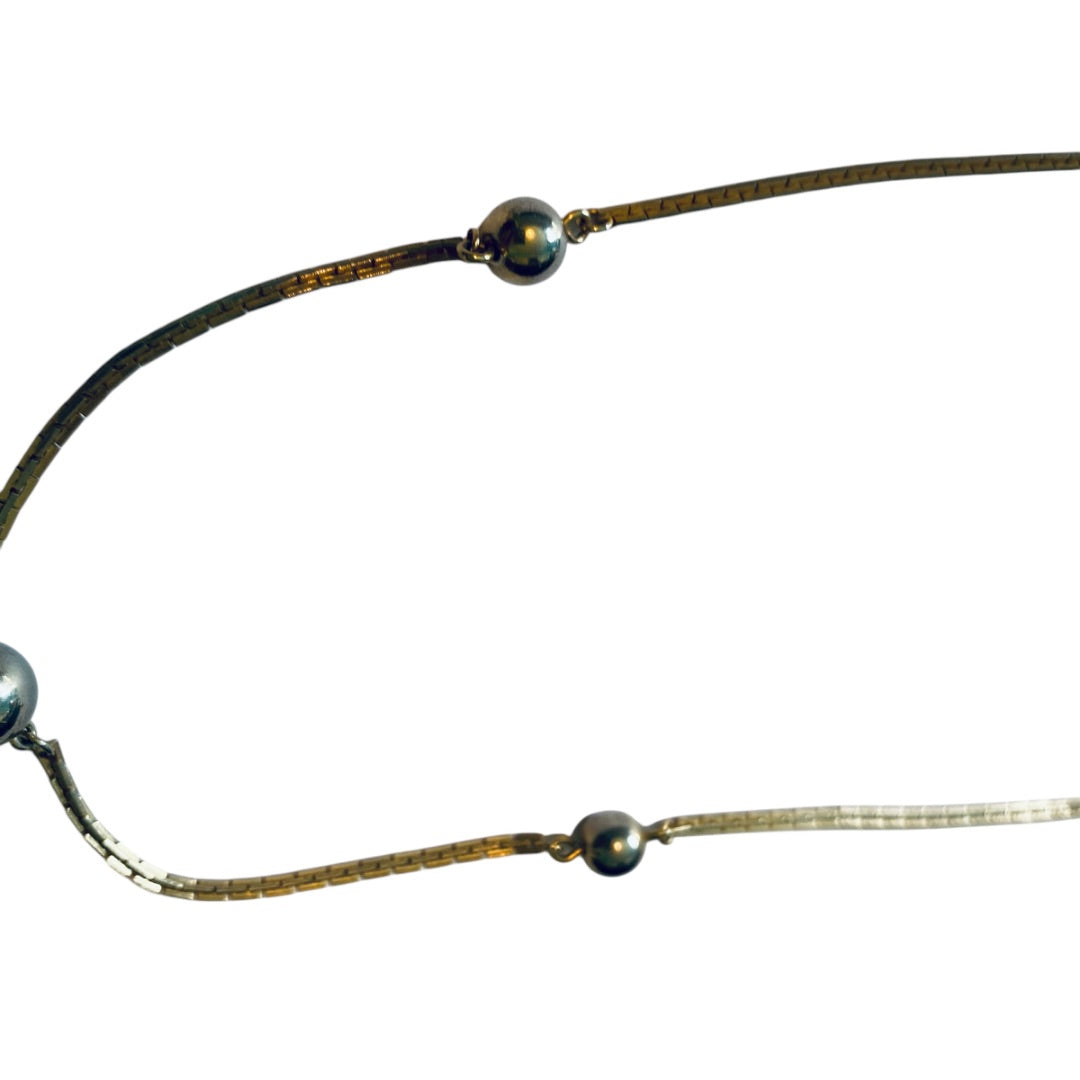 Vintage Signed 25 inch Avon Box Chain Necklace Goldtone with Silvertone Beads Spring Clasp