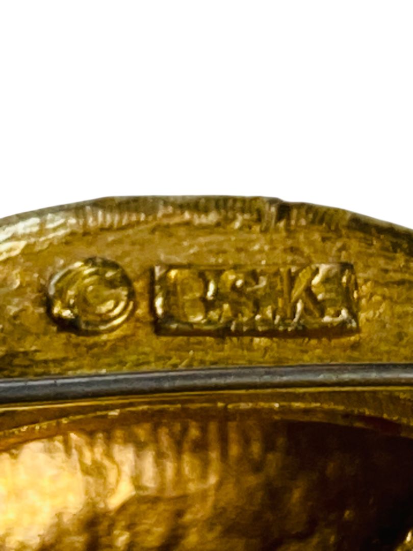 Vintage Signed BSK Brooch Pin Goldtone Fox Face 2.5" Figural