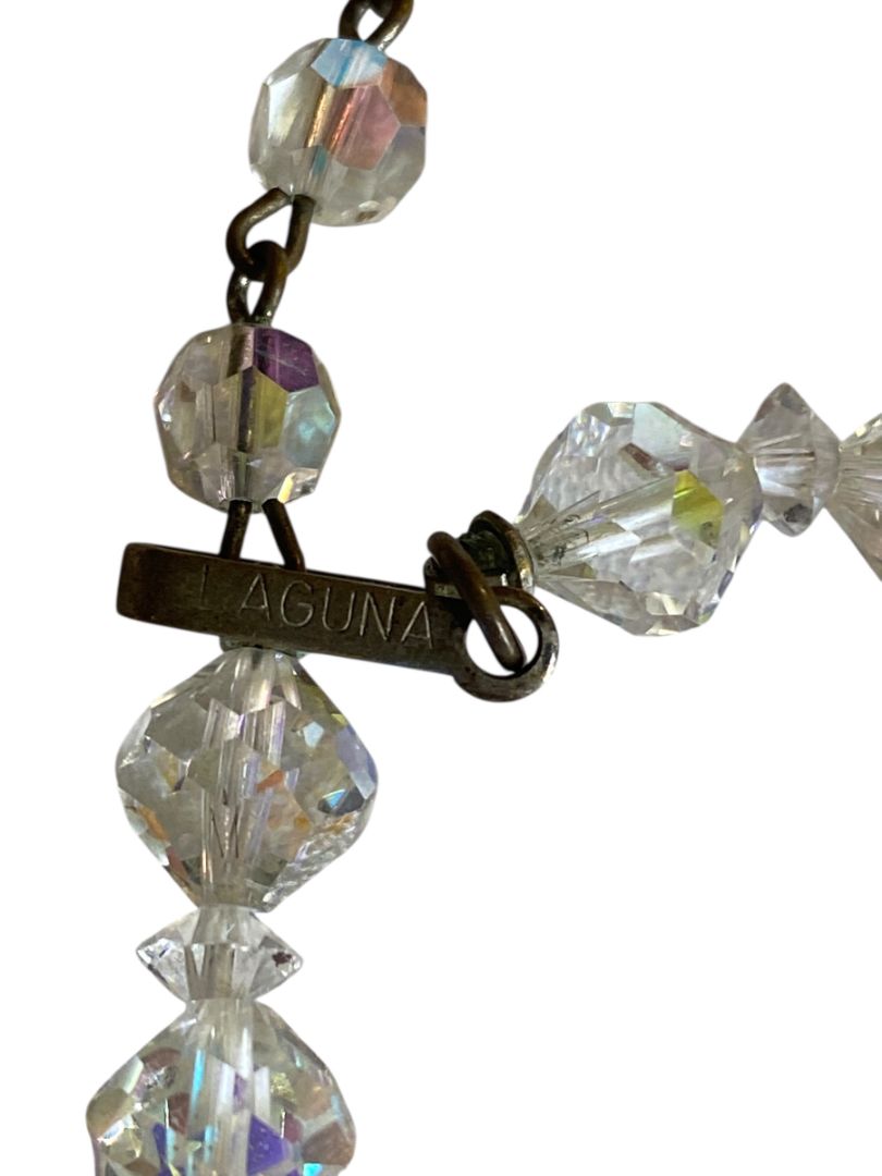 Vintage Signed Laguna Aurora Borealis Beaded Necklace Hook Closure 15"