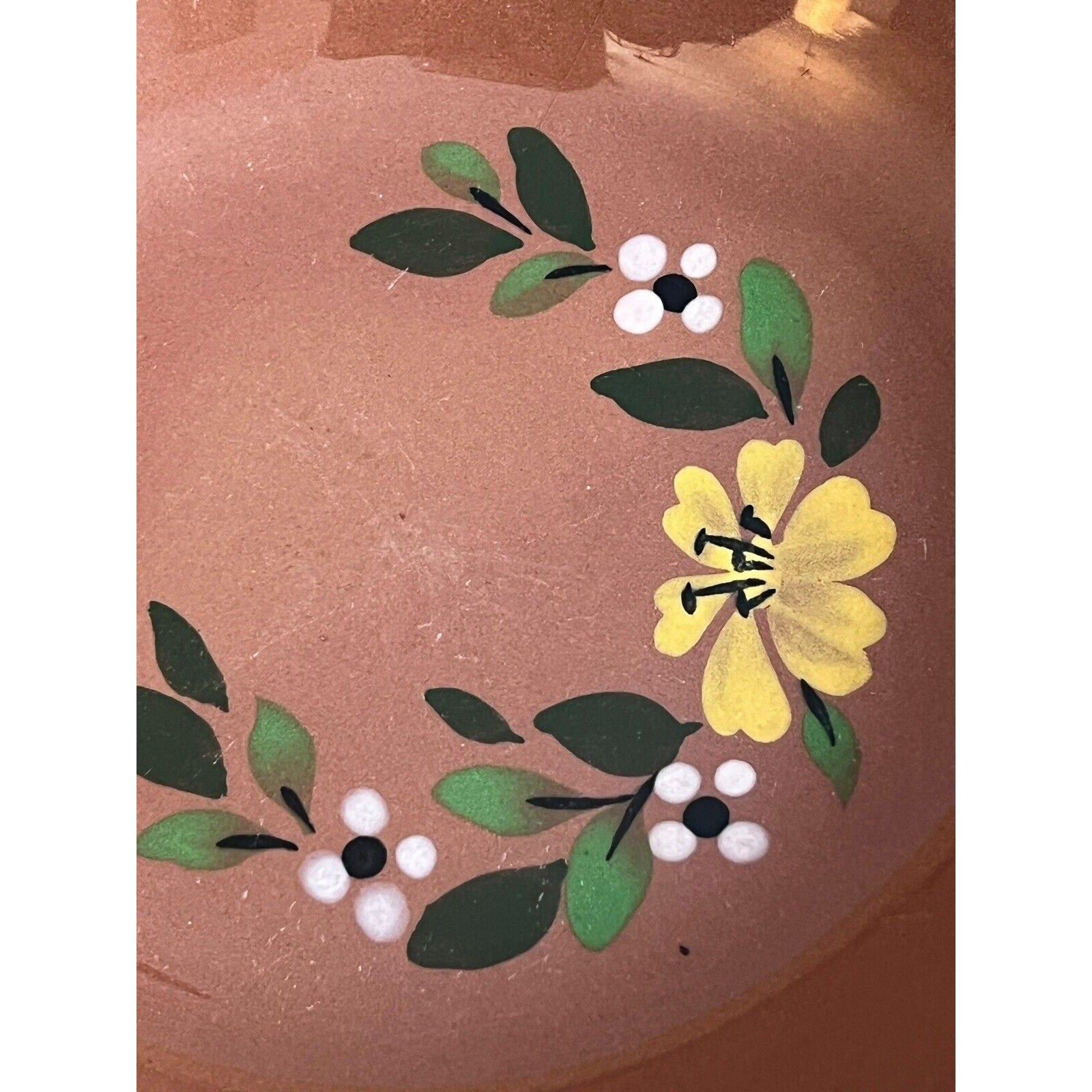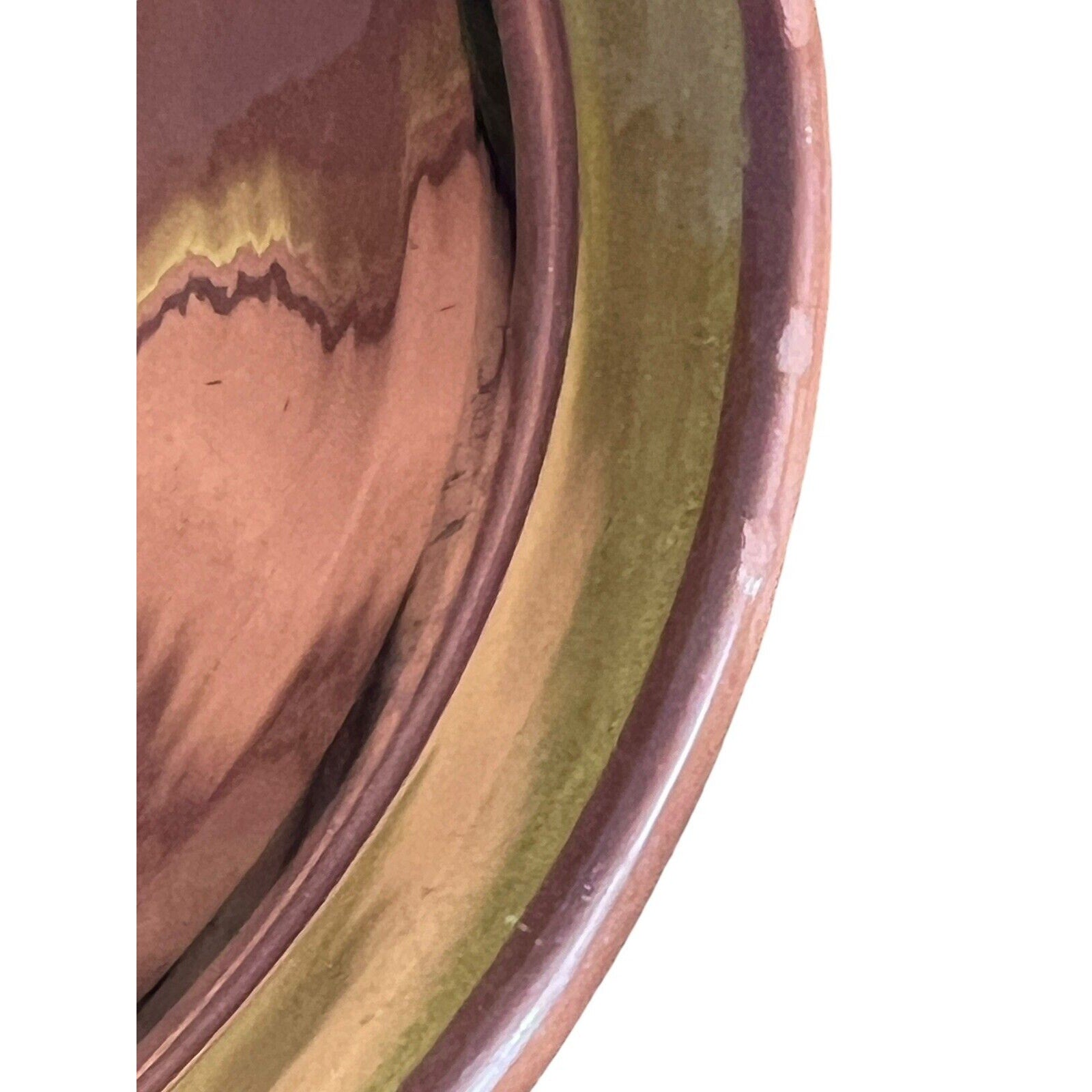 There is some wear on this piece. Utensils scratches on the glaze. Chipped glazing on edges. Would be a great piece for mosaic art.
