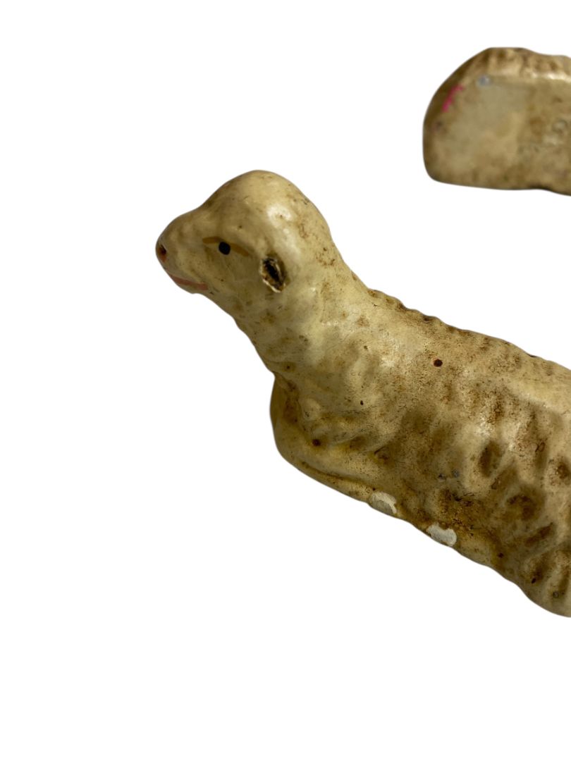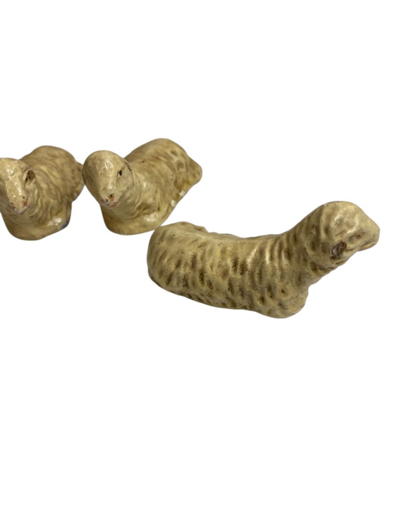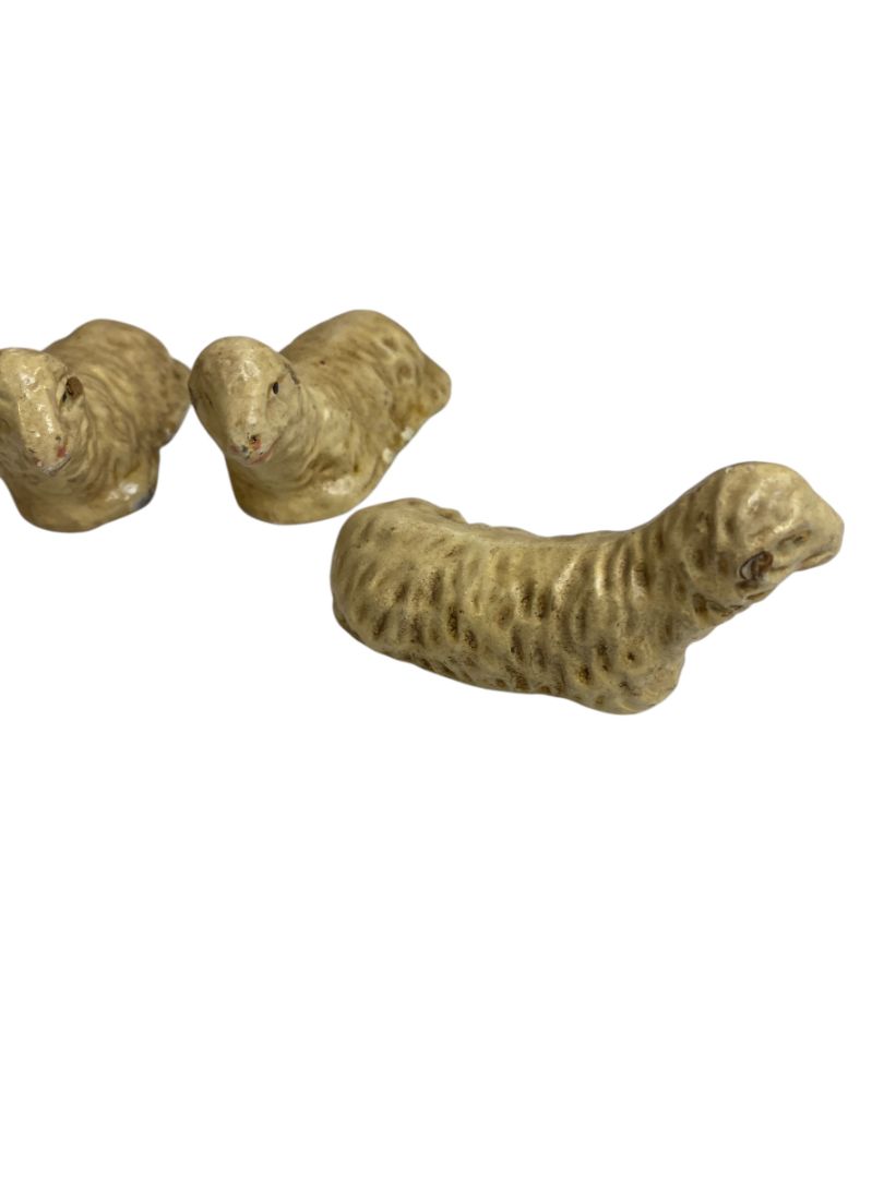 Vintage Three Sheep Hollow Plaster Nativity Figurine Western Germany 1.5" High