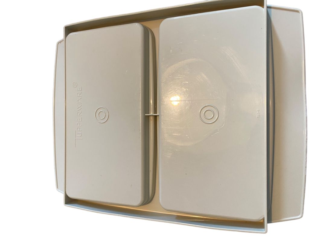 Vintage Tupperware 4 Piece Deviled Egg Carrier Keeper Tray Almond #723-4