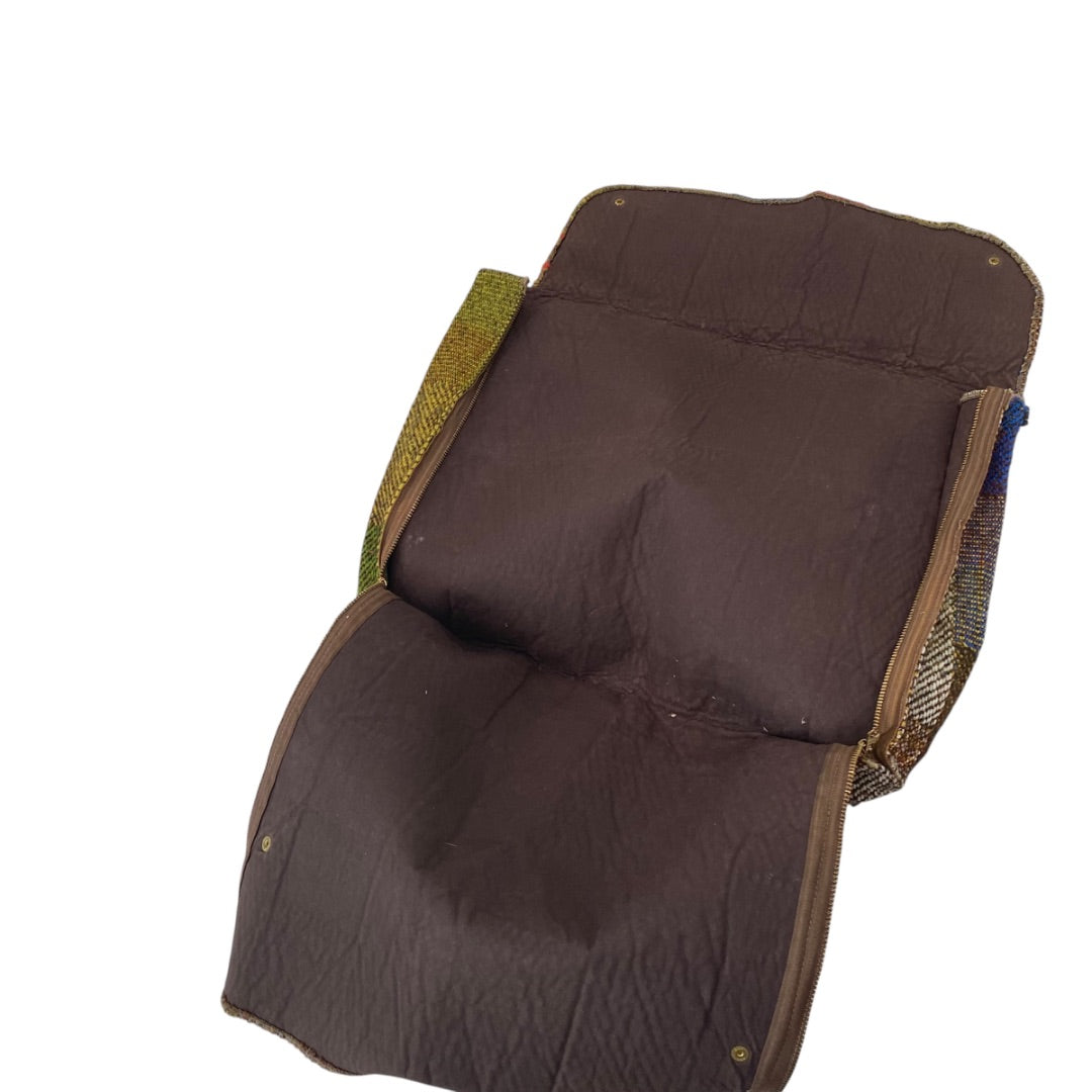 Vintage Tweed Blocked Portfolio Bag Case Side Zips Snap Closure 20"l x 15.5"h