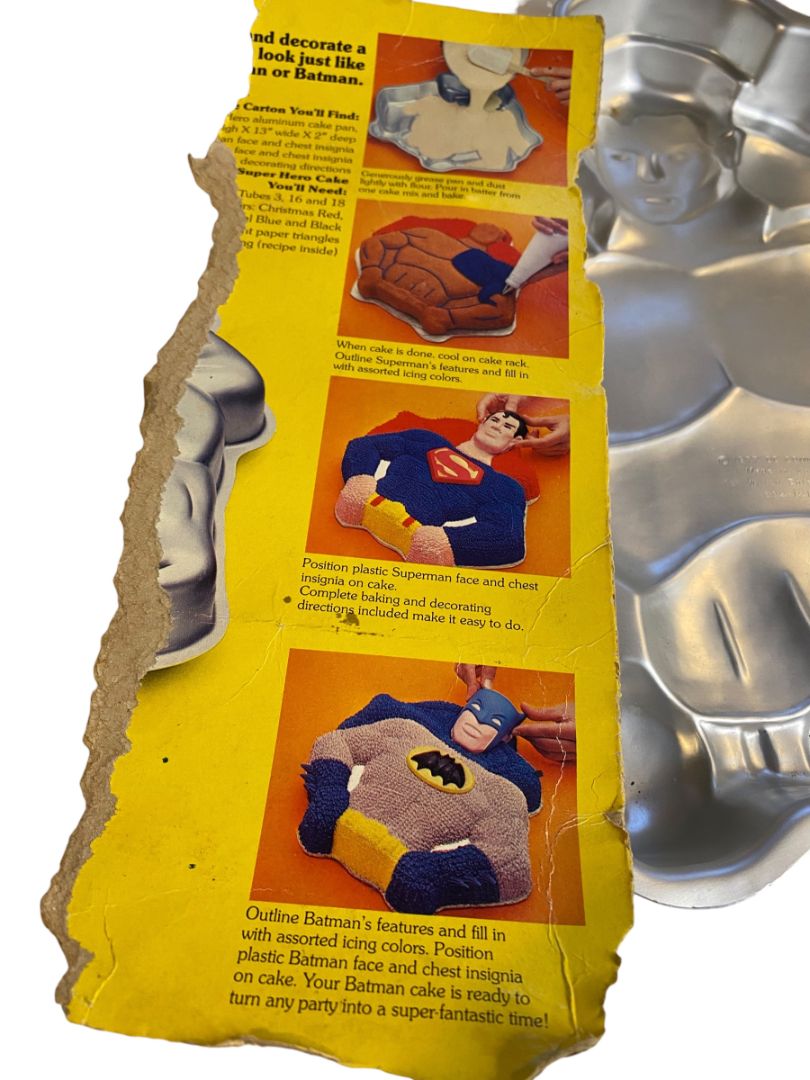 Vintage Wilton Superman Batman Cake Pan Complete Face Chest Plates Shield