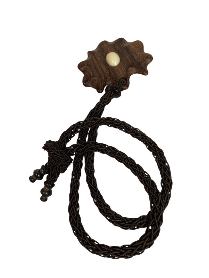 Vintage Wooden Medallion Tie Closure Necklace Statement Medallion Faux Wood