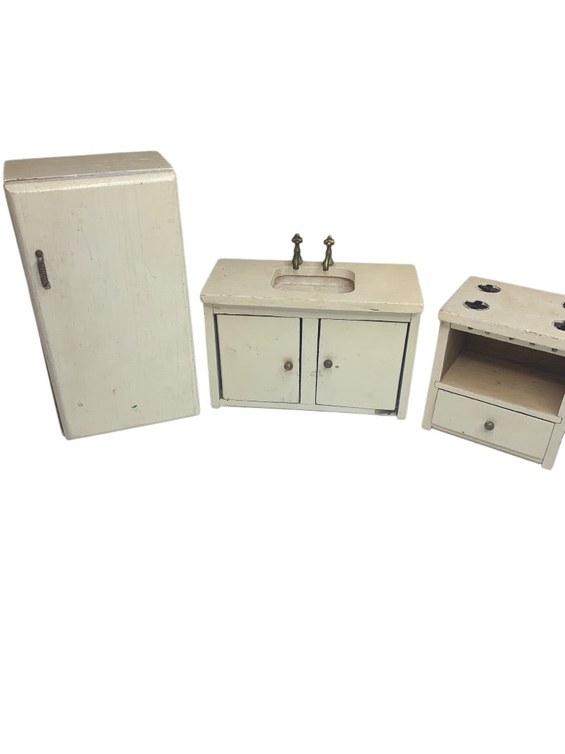 Vintage Wooden Miniature Dollhouse 1:12 Kitchen Farmhouse Set