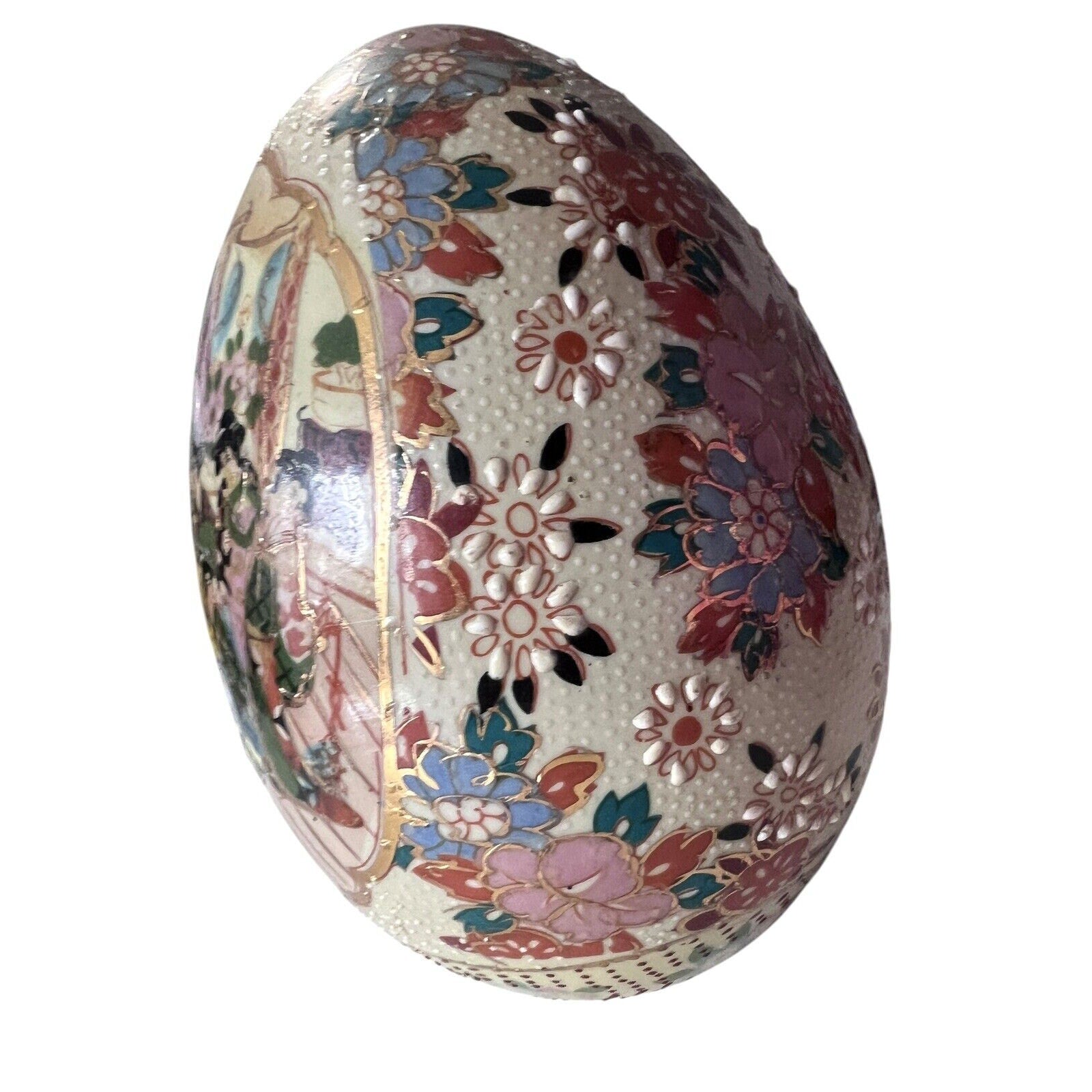 VTG Japanese Porcelain Hand Painted Egg Geisha Flowers Oriental 6 3/4” Tall