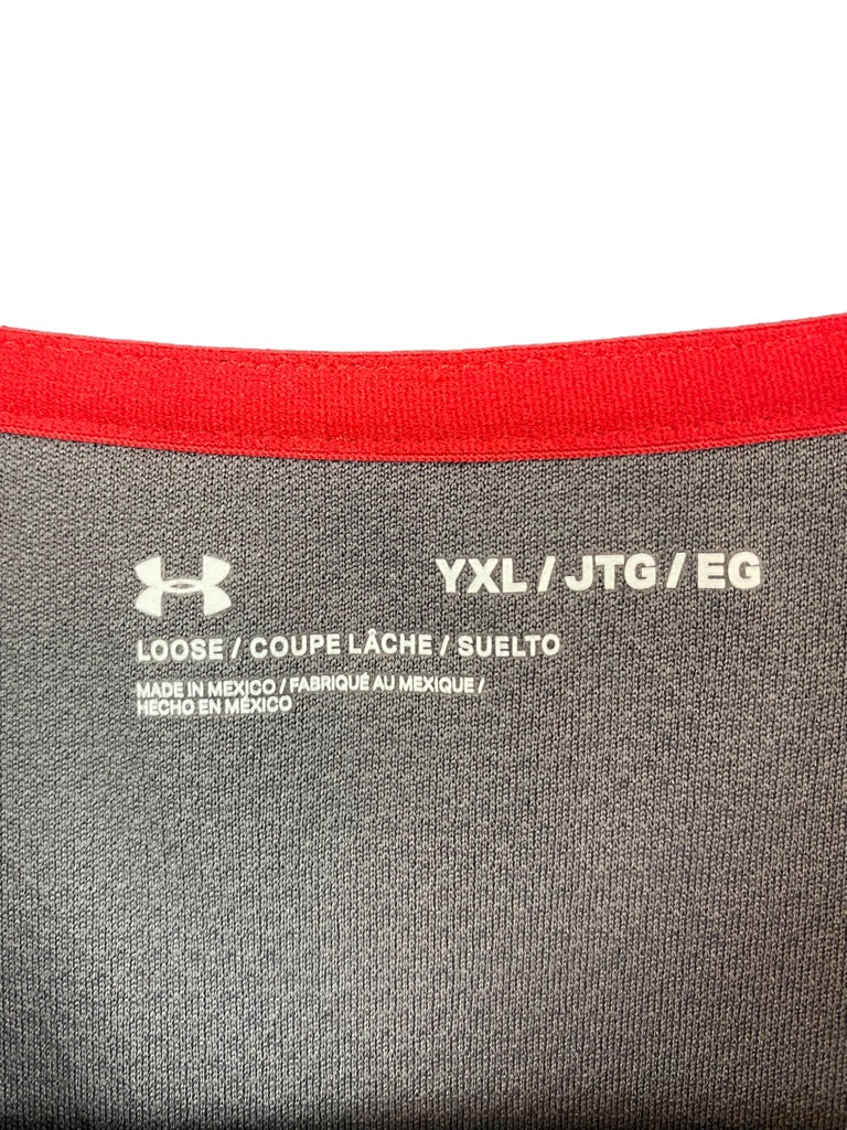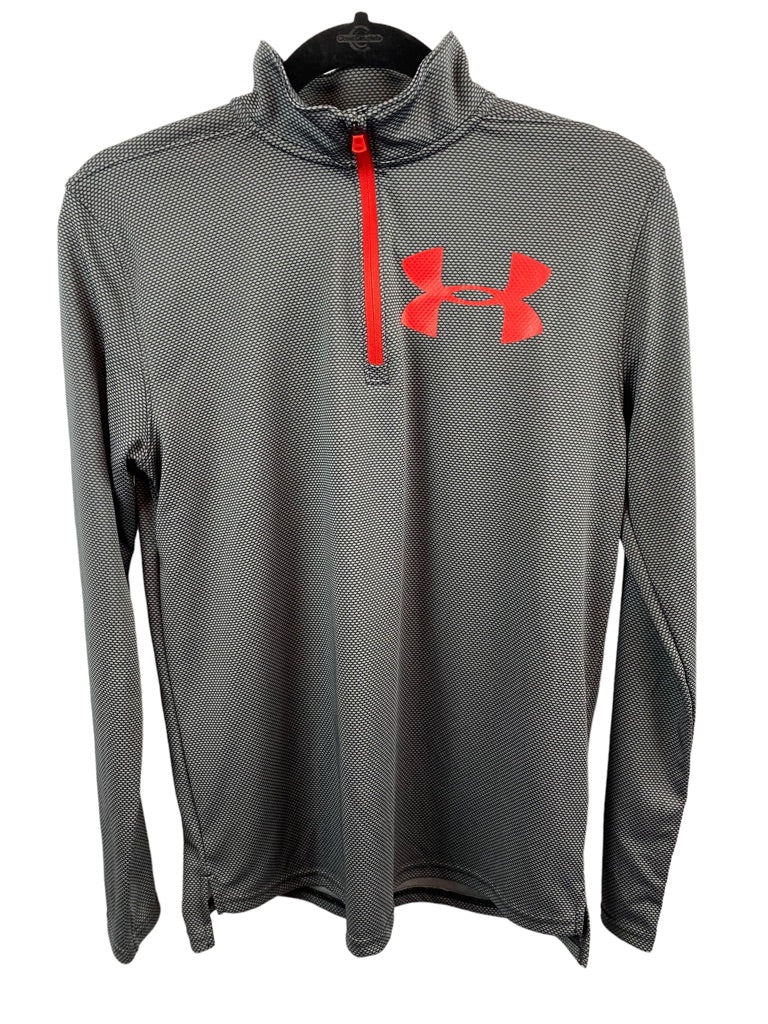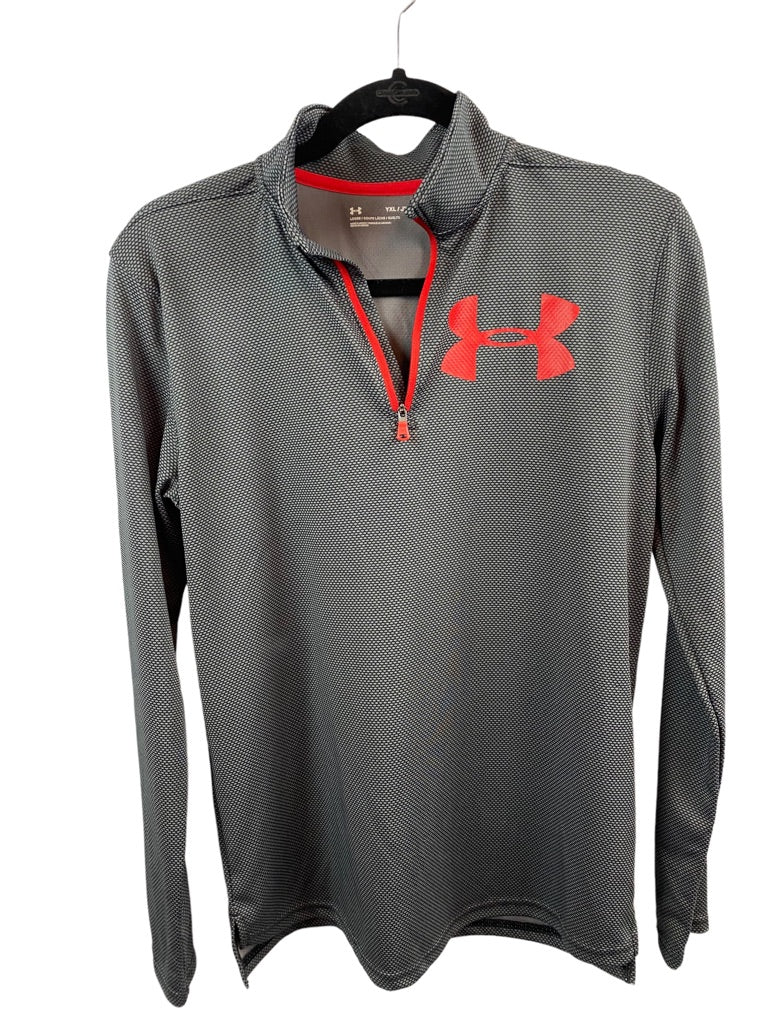 XL Youth Under Armour 1/4 Zip Pullover Gray Red Logo Long Sleeve Boy's